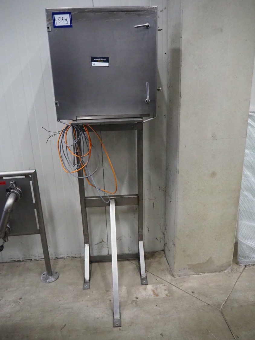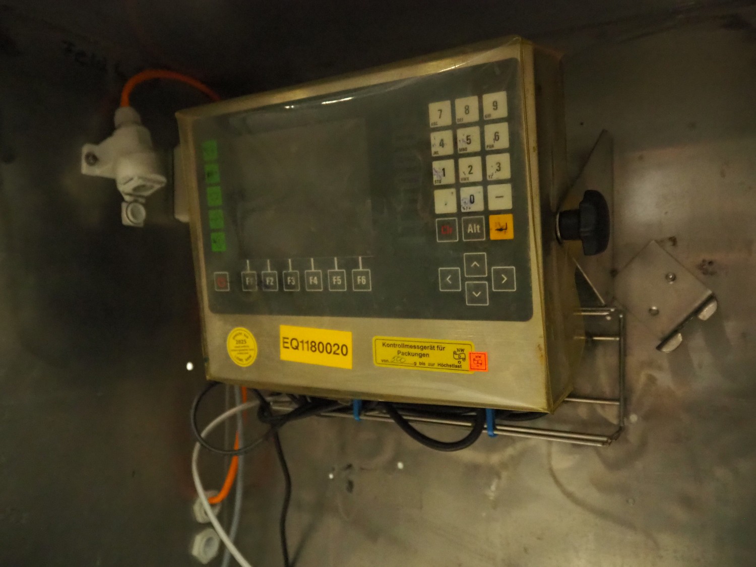 S/s wall mounted cabinet with MeWa scale, model: IT6000E, serial number: 1705043, 110-240 V, 50/60 Hz, 0.2 A, maximum weight: 6/15 kg, minimum weight: 0.040/0.100 kg, e=: 0.002/0.005 kg, dimensions scale: 310 mm x 270 mm, total dimensions: 600 mm x 350 mm x 600 mm.