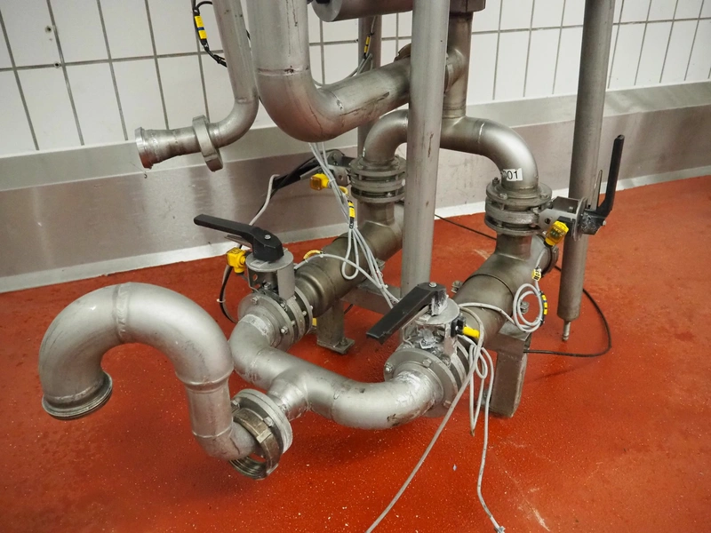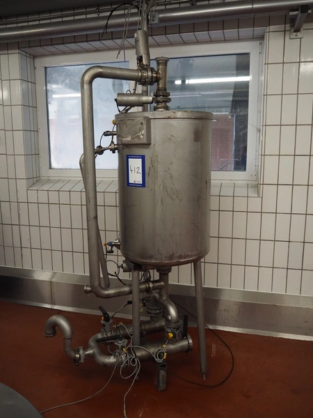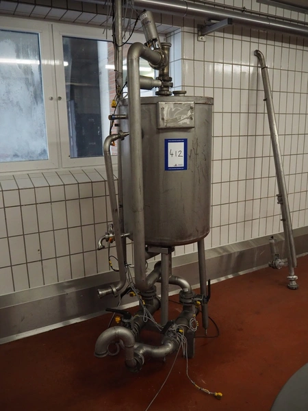 S/s tank, dimensions tank: Ø 600 mm x 900 mm, total dimensions: Ø 600 mm x 2000 mm, including various APV valves.