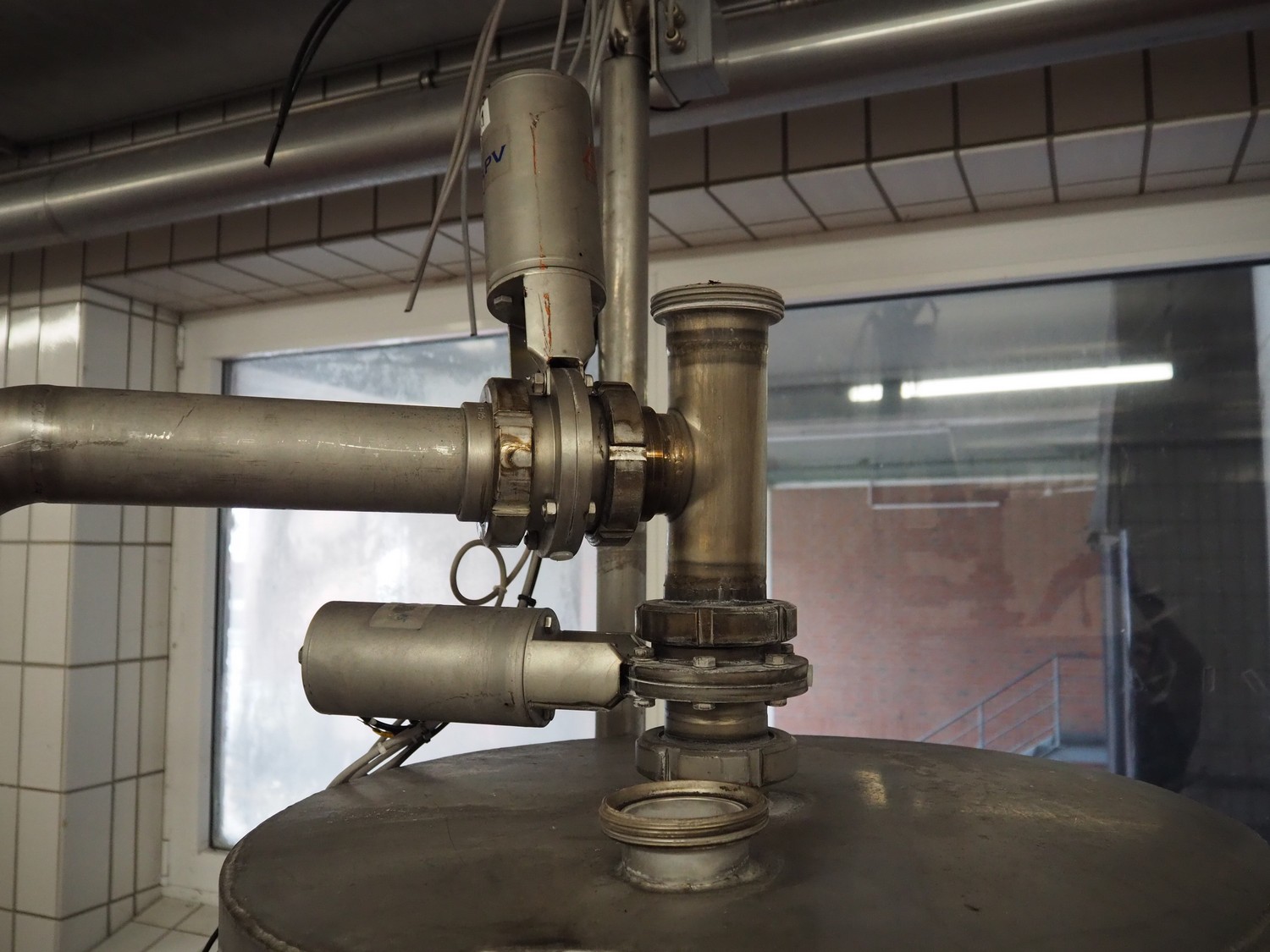 S/s tank, dimensions tank: Ø 600 mm x 900 mm, total dimensions: Ø 600 mm x 2000 mm, including various APV valves.