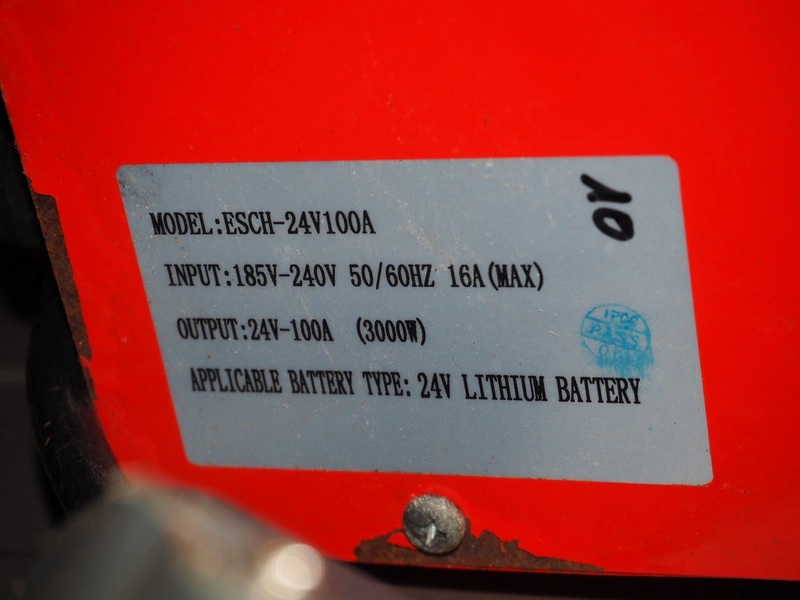 Battery charger, dimensions: 220 mm x 200 mm x 380 mm.