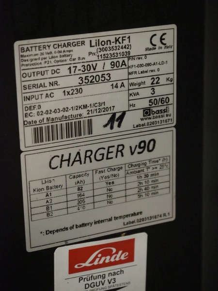 Linde Material Handling battery charger, serial number: 352053, year of construction: 21/12/2017, dimensions: 330 mm x 250 mm x 530 mm.