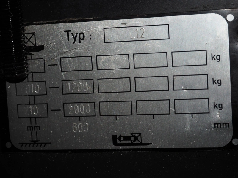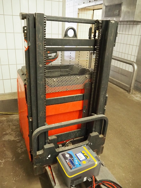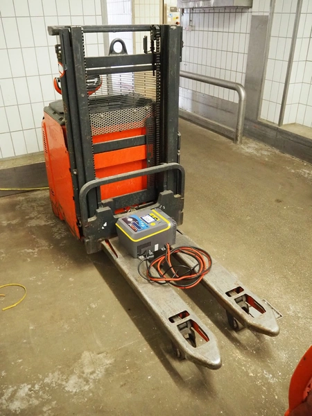 Linde Material Handling electric pallet lifter, type: L12.L, serial number: W4X133D00277, year of construction: 2013, 24 V, 3 kW, rated capacity: 1200/2000 kg, fork length: (2x) 1150 mm, distance between forks: 200 mm, fork width: 560 mm, lifting height: 2010 mm, total dimensions: 2300 mm x 800 mm x 1450 mm. Including Life Tech battery charger, type: CC210, serial number: RBA204181, 200/260 V, 50/60 Hz, 72 A, Pmax= 2165 W.