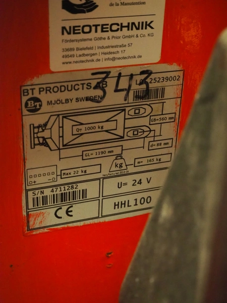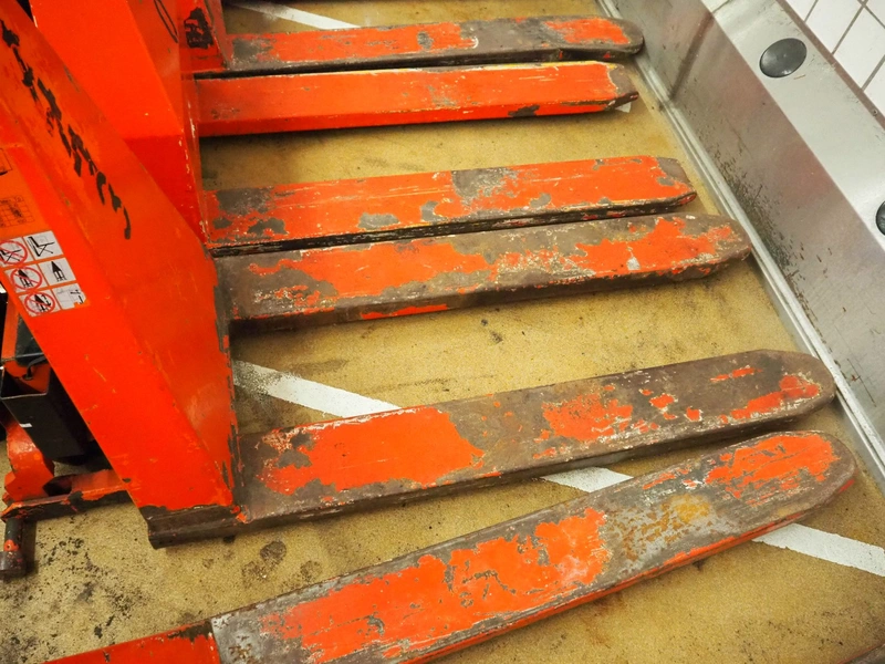 Jungheinrich electric pallet lifter, fork length: 1150 mm, fork width: 540 mm, total dimensions: 1800 mm x 700 mm x 1350 mm.
