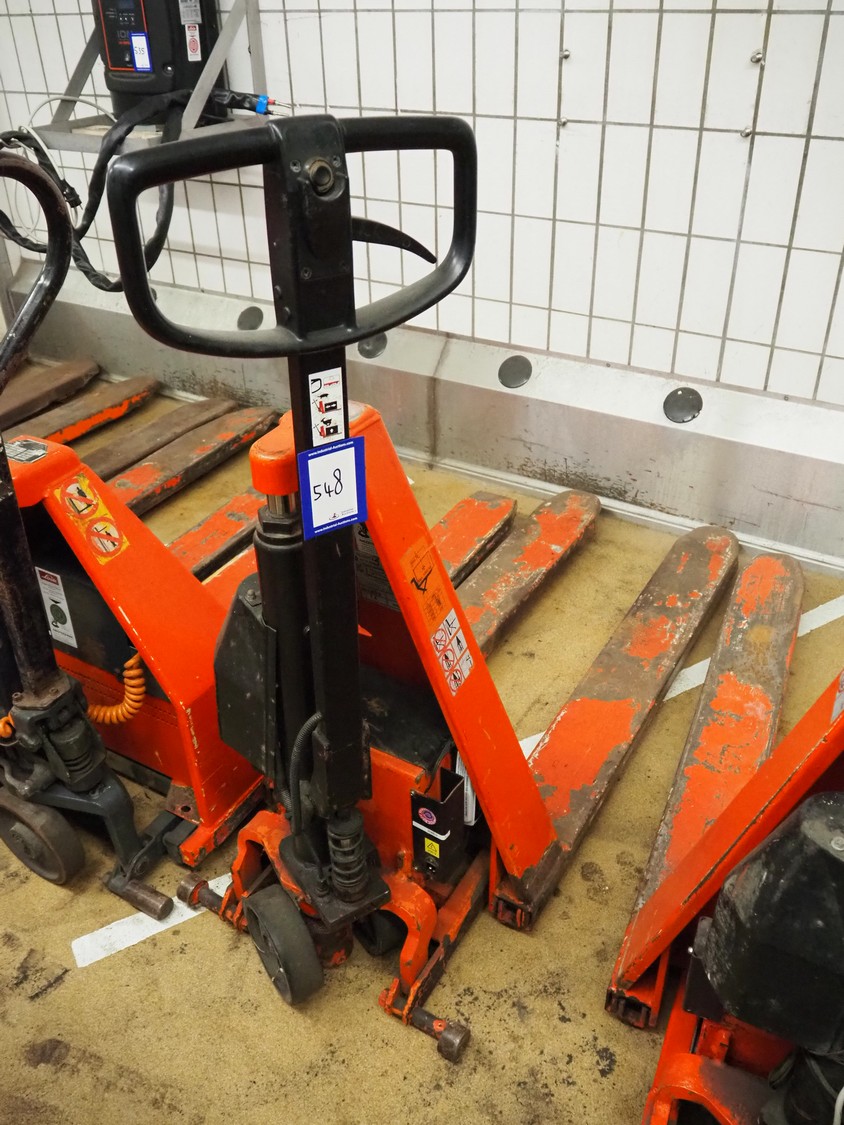 Jungheinrich electric pallet lifter, fork length: 1150 mm, fork width: 540 mm, total dimensions: 1800 mm x 700 mm x 1350 mm.