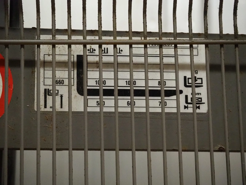 Electric pallet lifter, serial number: 90500209, fork length: 1190 mm, fork width: 570 mm, distance between: 200 mm, total dimensions: 2000 mm x 750 mm x 1290 mm.