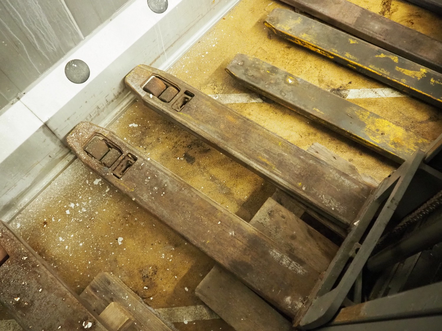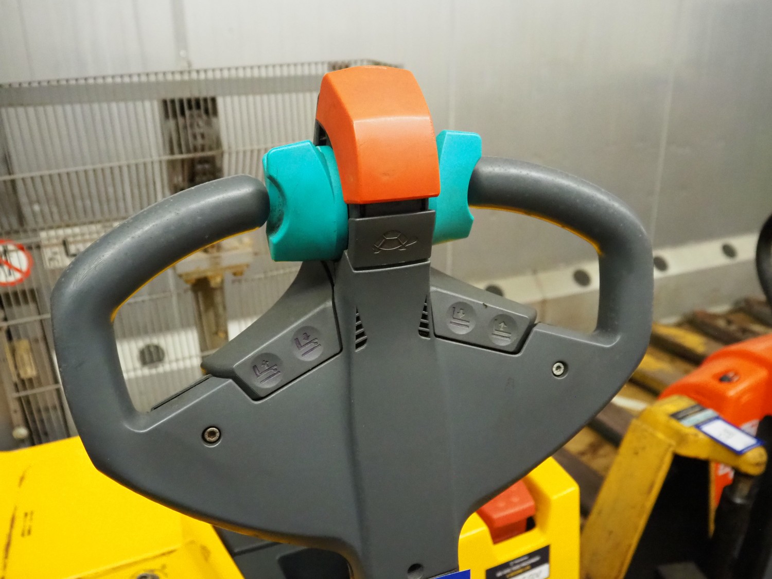 Electric pallet lifter, serial number: 90500209, fork length: 1190 mm, fork width: 570 mm, distance between: 200 mm, total dimensions: 2000 mm x 750 mm x 1290 mm.