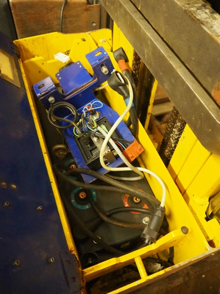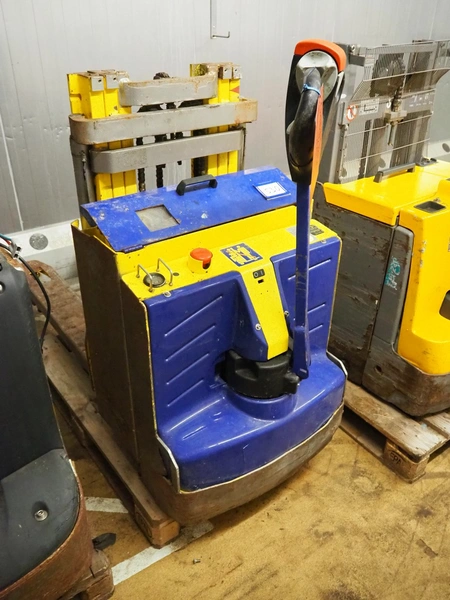 Stöcklin electric pallet lifter, type: EDD 12, chassis number: 1985216 V2.6, year of construction: 2016, load capacity: 1200 kg, 24 V, weight without battery: 695 kg, min/max battery weight: 130/280 kg, fork length: 1150 mm, total dimensions: 2000 mm x 700 mm x 1220 mm. Technical condition unknown.