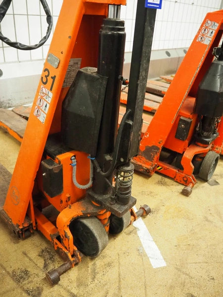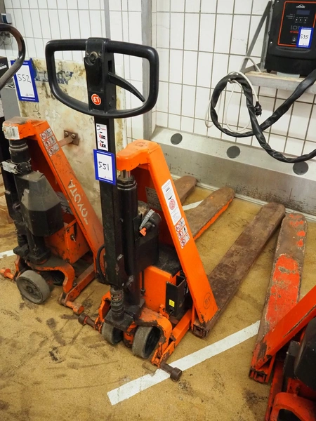 BT Products AB electric pallet lifter, model: HHL100, serial number: 4713310, year of construction: 01-2013, capacity: 1000 kg, steel forks, fork length: 1180 mm, total dimensions: 1800 mm x 750 mm x 1850 mm.
