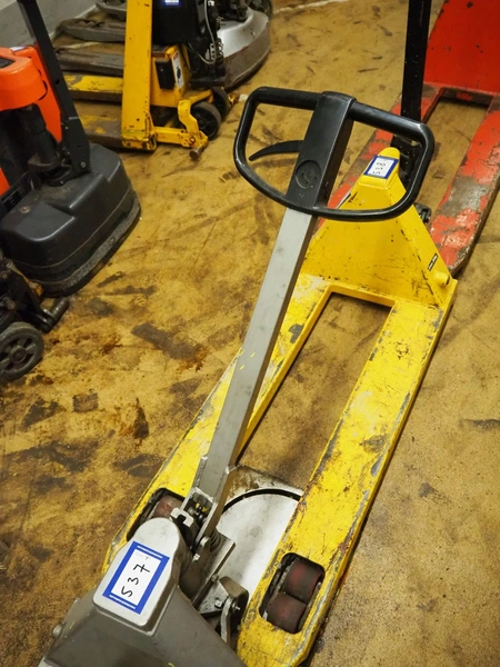 BT Products AB pallet lifter, type: LHM200ST, serial number: 3243747, fork length: 1150 mm, fork width: 520 mm, distance between forks: 205 mm, total dimensions: 1550 mm x 530 mm x 1230 mm.