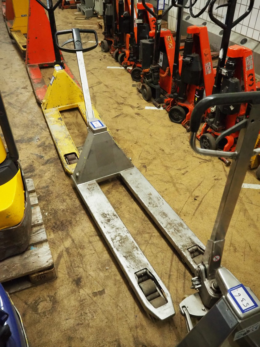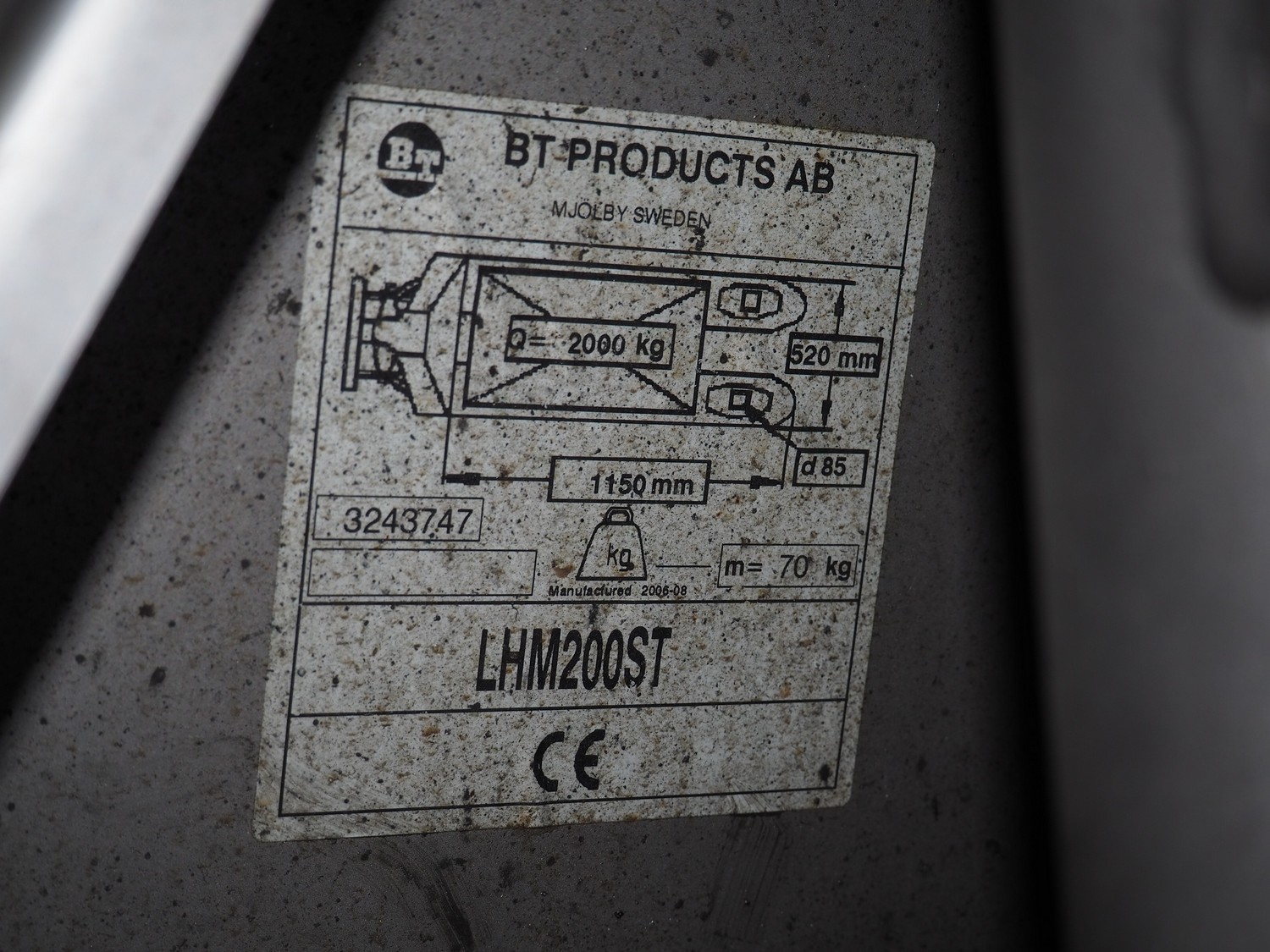BT Products AB pallet lifter, type: LHM200ST, serial number: 3243747, fork length: 1150 mm, fork width: 520 mm, distance between forks: 205 mm, total dimensions: 1550 mm x 530 mm x 1230 mm.