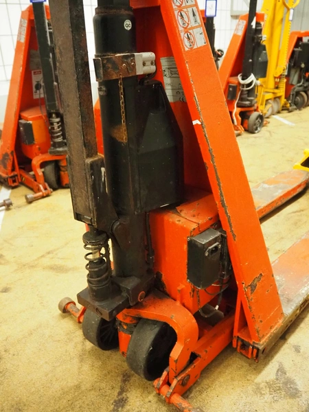 Toyota pallet lifter, type: HTH 10 E, serial number: 473482, fork length: 1190 mm, fork width: 550 mm, distance between forks: 235 mm, total dimensions: 1700 mm x 560 mm x 1270 mm.