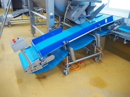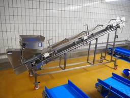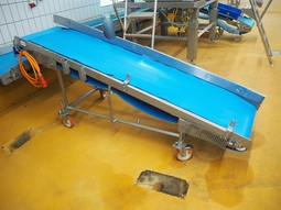 Mobile elevating belt, s/s frame, plastic belt with dividers, belt width: 500 mm, distance between dividers: 400 mm, divider height…28 bidsLot is closed