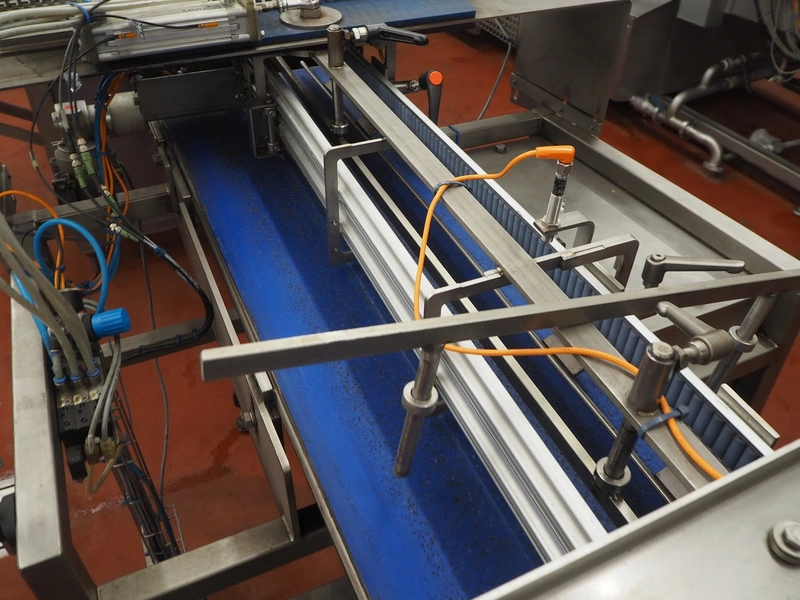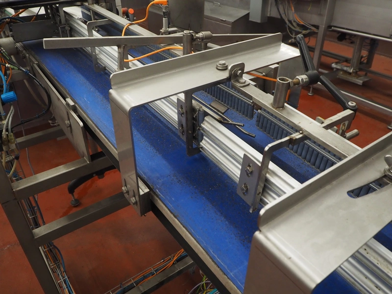 Geppert lane dividing belt, type: GES, fabrication number: 1207682, year of construction: 2012, s/s frame, plastic belt, belt width: 400 mm, total dimensions: 2050 mm x 1150 mm x 1550 mm.
