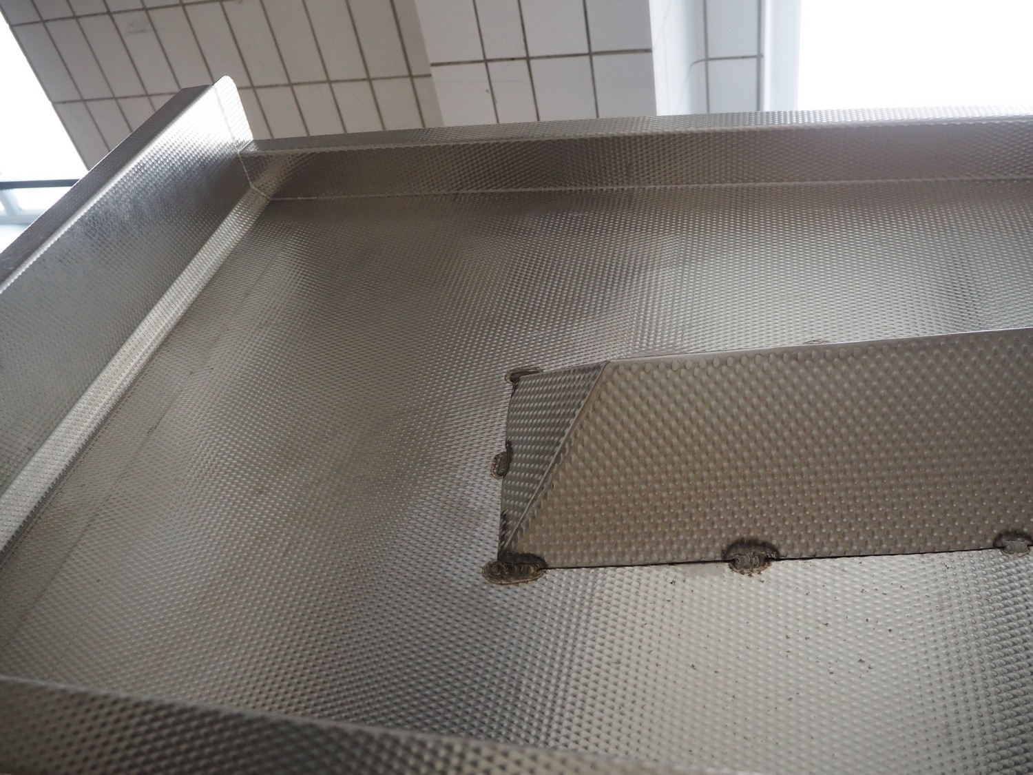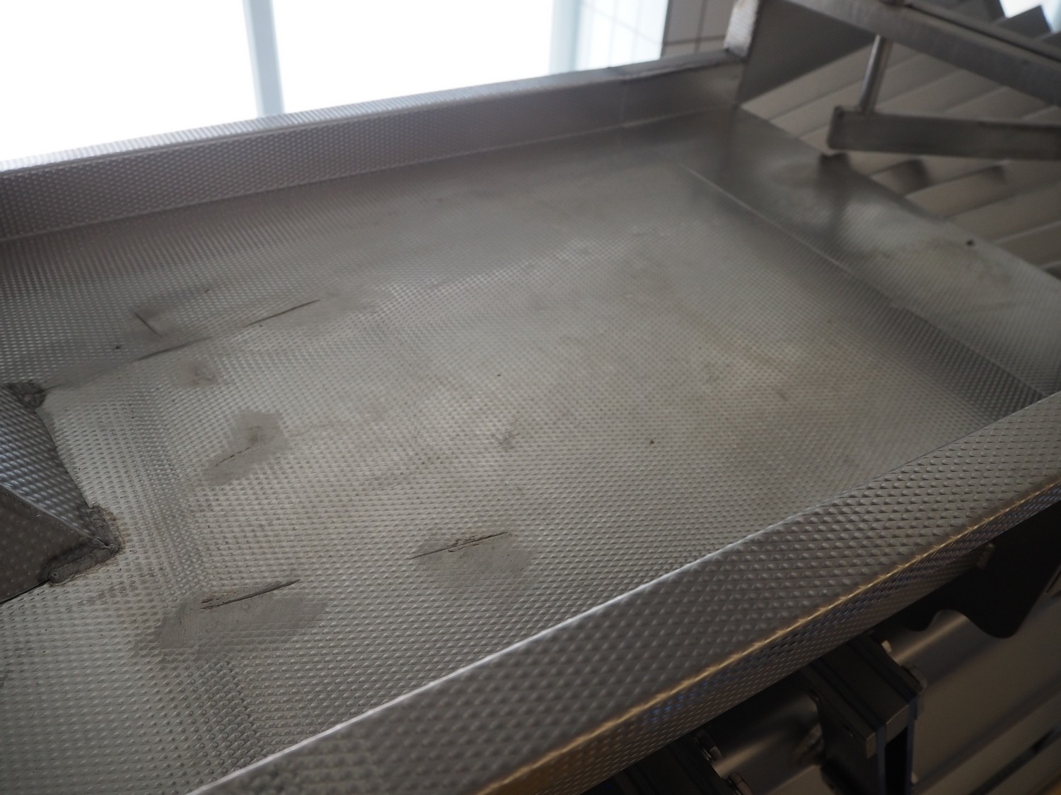 TNA vibrating gutter, type: Roflo-VM3, serial number: VM3-B-3790, year of construction: 2018, 230 V, 1 Ph, 50/60 Hz, 15 A, s/s gutter, gutter width: 600 mm, total dimensions: 3200 mm x 1400 mm x 2600 mm.