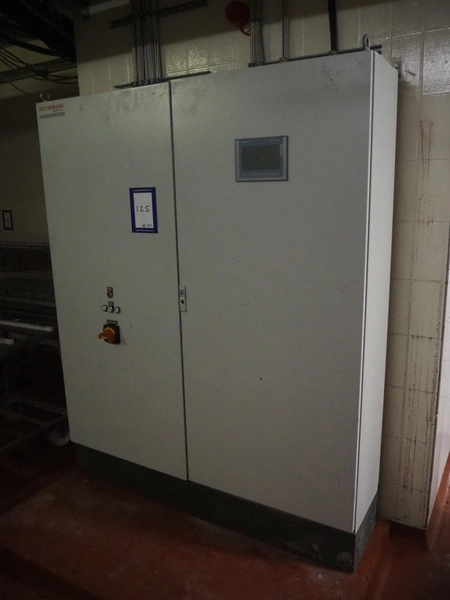 Rittal switch cabinet with Siemens Simatic HMI touch screen, dimensions: 1600 mm x 400 mm x 2050 mm.