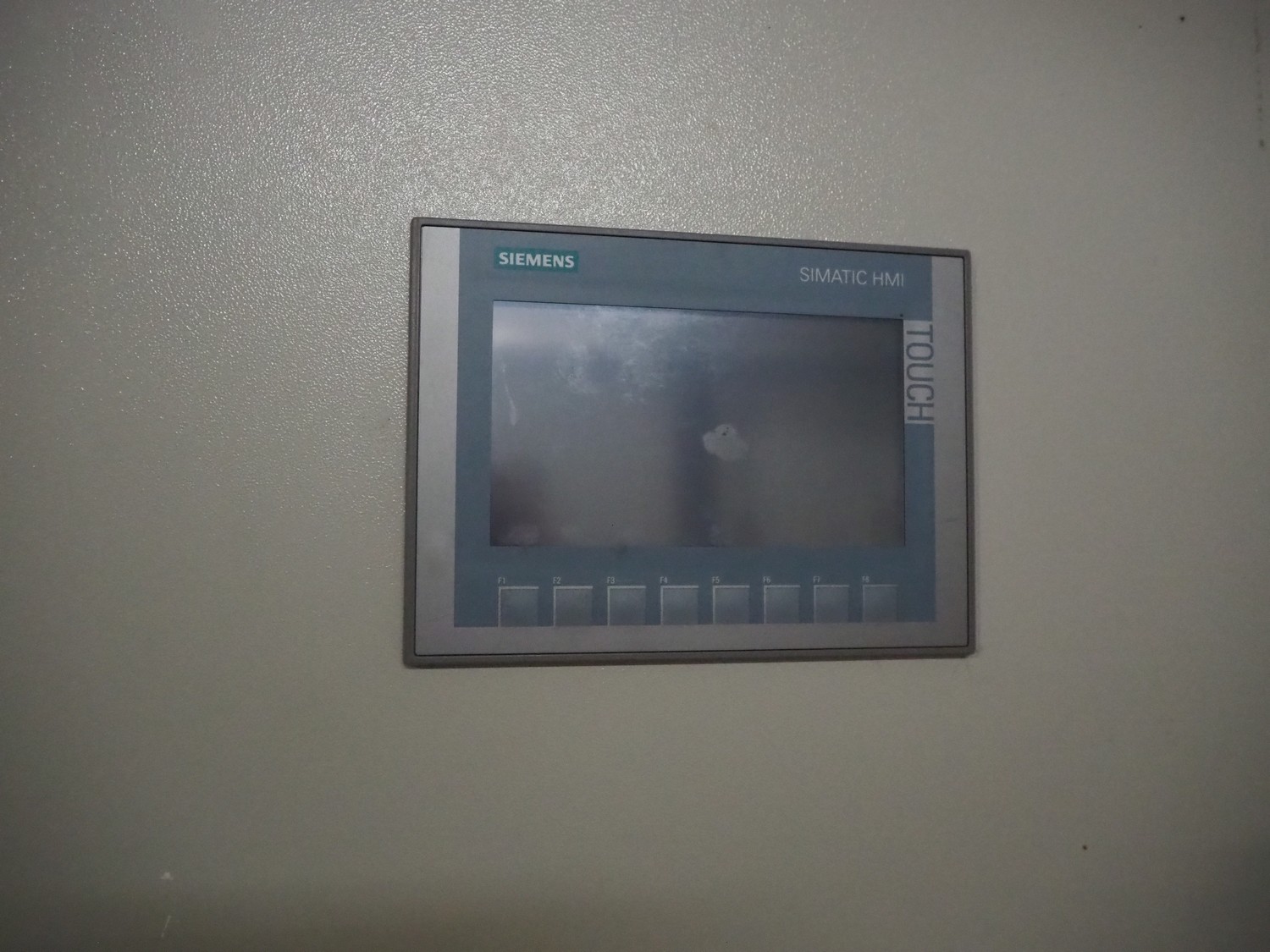 Rittal switch cabinet with Siemens Simatic HMI touch screen, dimensions: 1600 mm x 400 mm x 2050 mm.