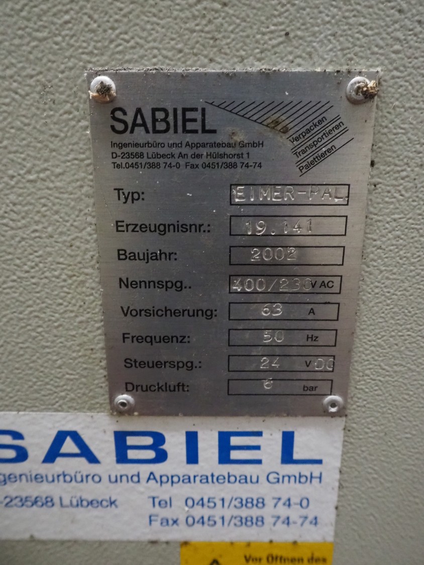Sabiel switch cabinet, type: EIMER-PAL, 19.141, year of construction: 2002, 400/230 V, 50 Hz, 63 A, dimensions: 2480 mm x 500 mm x 2010 mm.