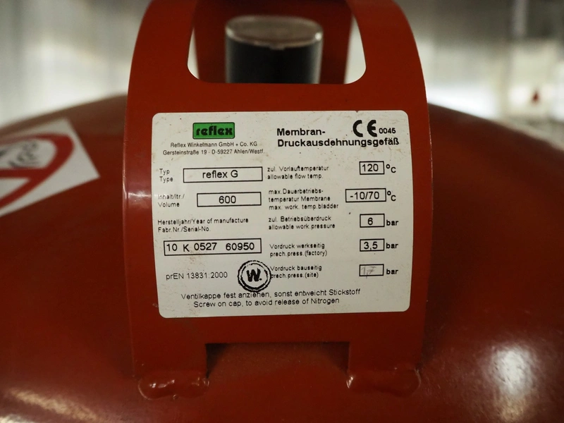 2 Reflex expansion vessels, dimensions vessels: Ø 640 mm x 1060 mm and Ø 1000 mm x 2550 mm,