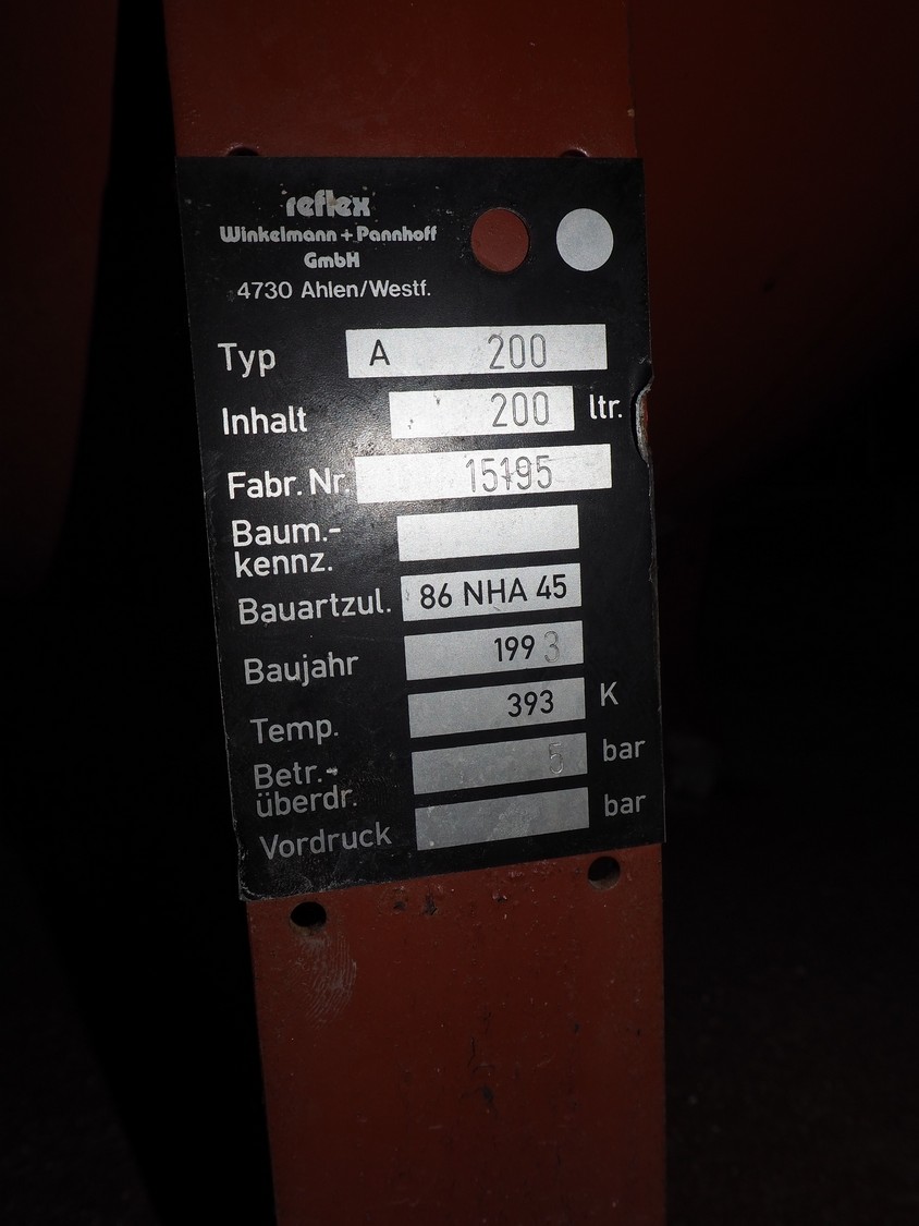 2 Reflex expansion vessels, dimensions vessels: Ø 640 mm x 1060 mm and Ø 1000 mm x 2550 mm,