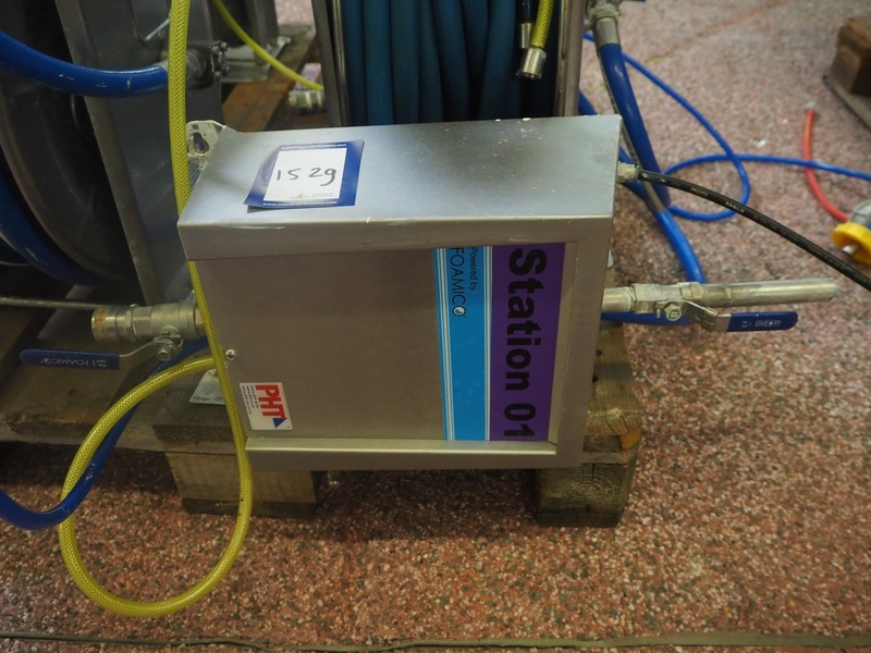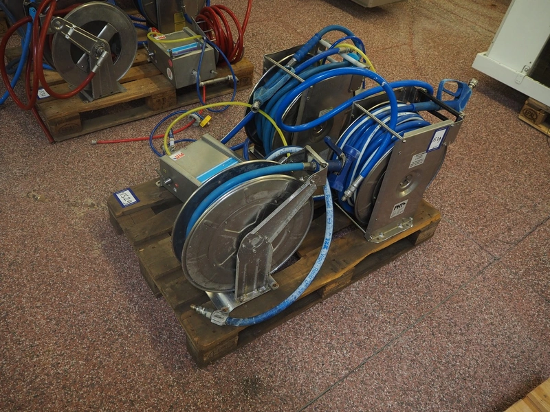 3 PHT / LHS s/s hose reel with plastic hose, spray pistol and Foamico foam unit, type hose reel: ST40/12/2e, serial number: 136180, year of construction: 2017, dimensions: 600 mm x 200 mm x 400 mm, 660 mm x 300 mm x 320 mm. type: ST40/12/12ep-eco, serial number: 050825, year of construction: 2005 and Foamico foam unit, dimensions: 510 mm x 320 mm x 400 mm, 180 mm x 300 mm x 350 mm. hose reel, dimensions: 450 mm x 200 mm x 700 mm.