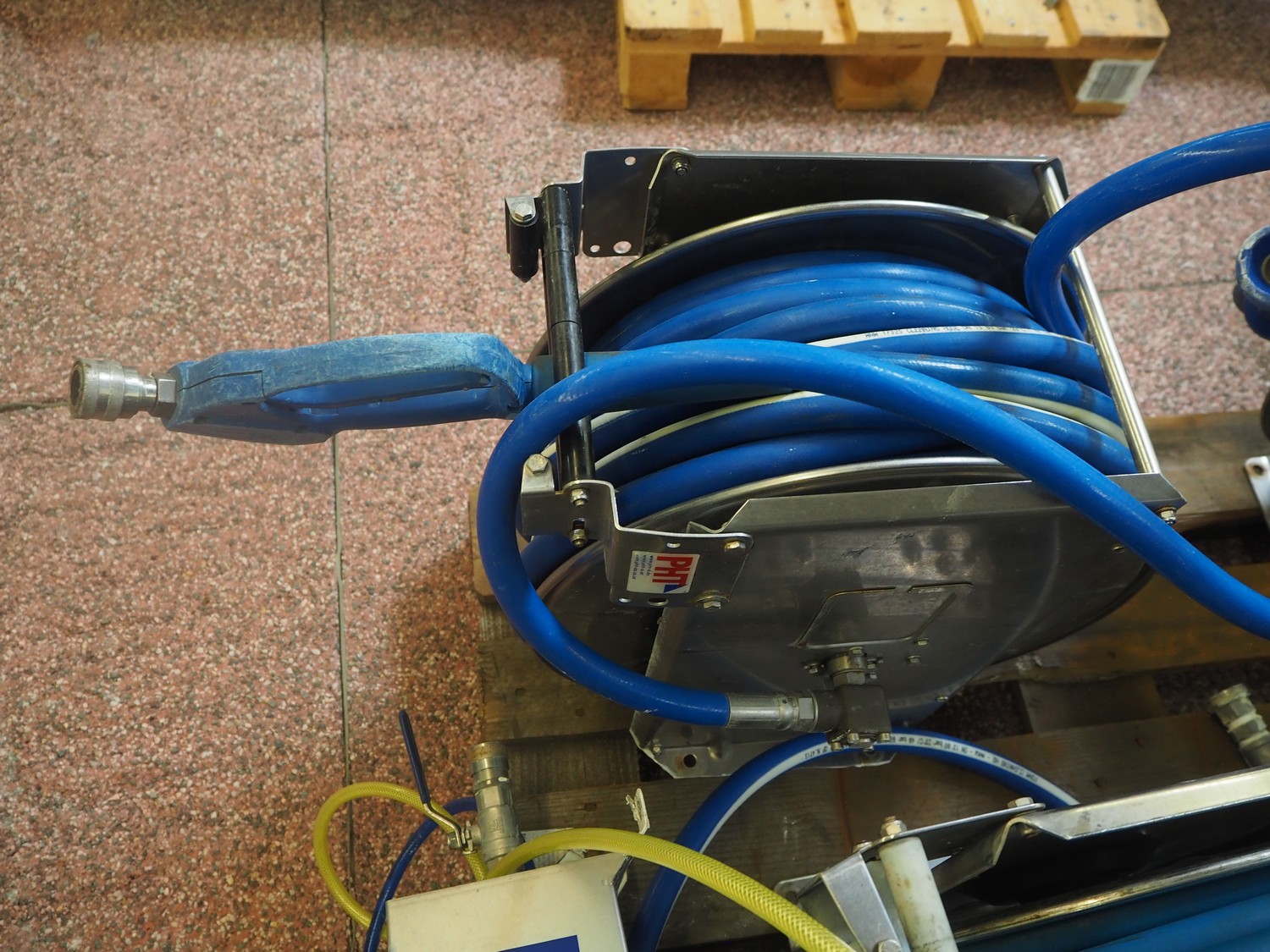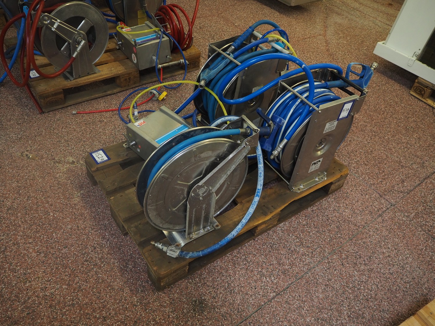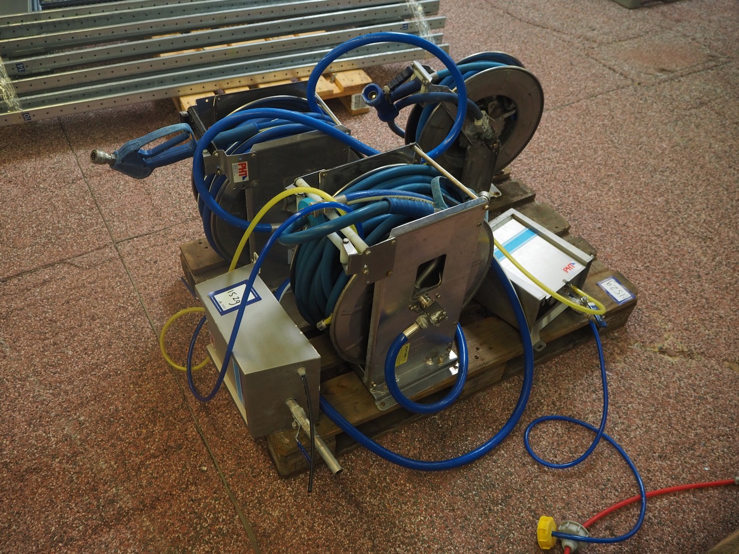 3 PHT / LHS s/s hose reel with plastic hose, spray pistol and Foamico foam unit, type hose reel: ST40/12/2e, serial number: 136180, year of construction: 2017, dimensions: 600 mm x 200 mm x 400 mm, 660 mm x 300 mm x 320 mm. type: ST40/12/12ep-eco, serial number: 050825, year of construction: 2005 and Foamico foam unit, dimensions: 510 mm x 320 mm x 400 mm, 180 mm x 300 mm x 350 mm. hose reel, dimensions: 450 mm x 200 mm x 700 mm.