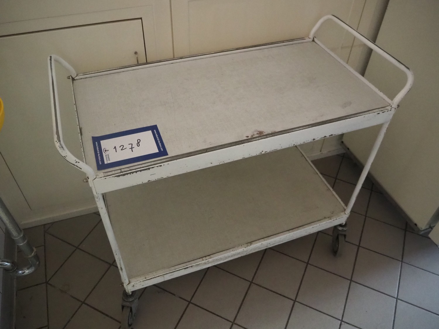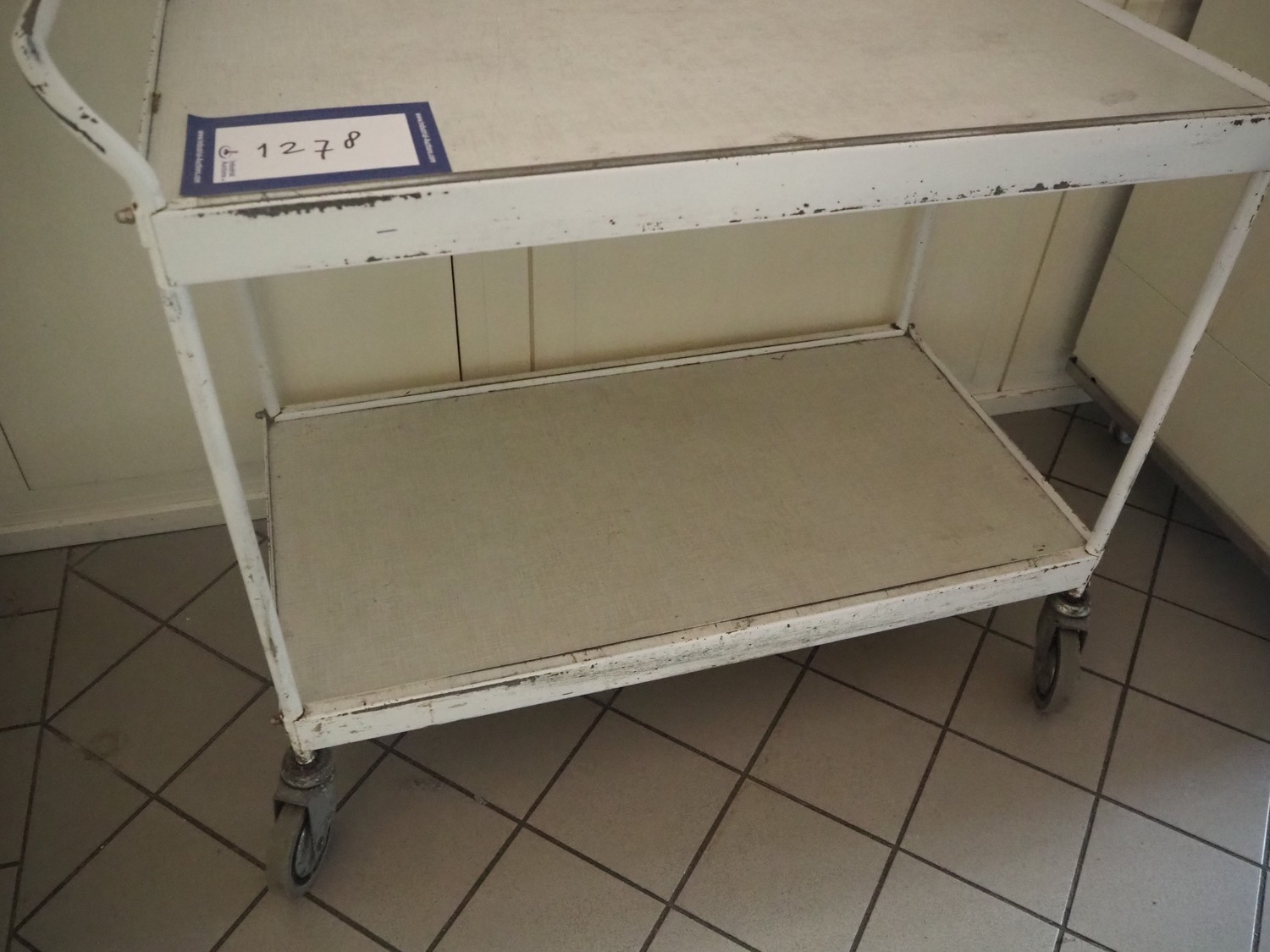 Steel trolley, 2 floors, dimensions: 750 mm x 400 mm x 900 mm.