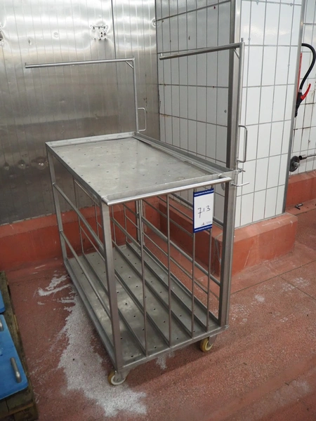 S/s trolley, working height: 1050 mm, total dimensions: 1200 mm x 670 mm x 1560 mm.