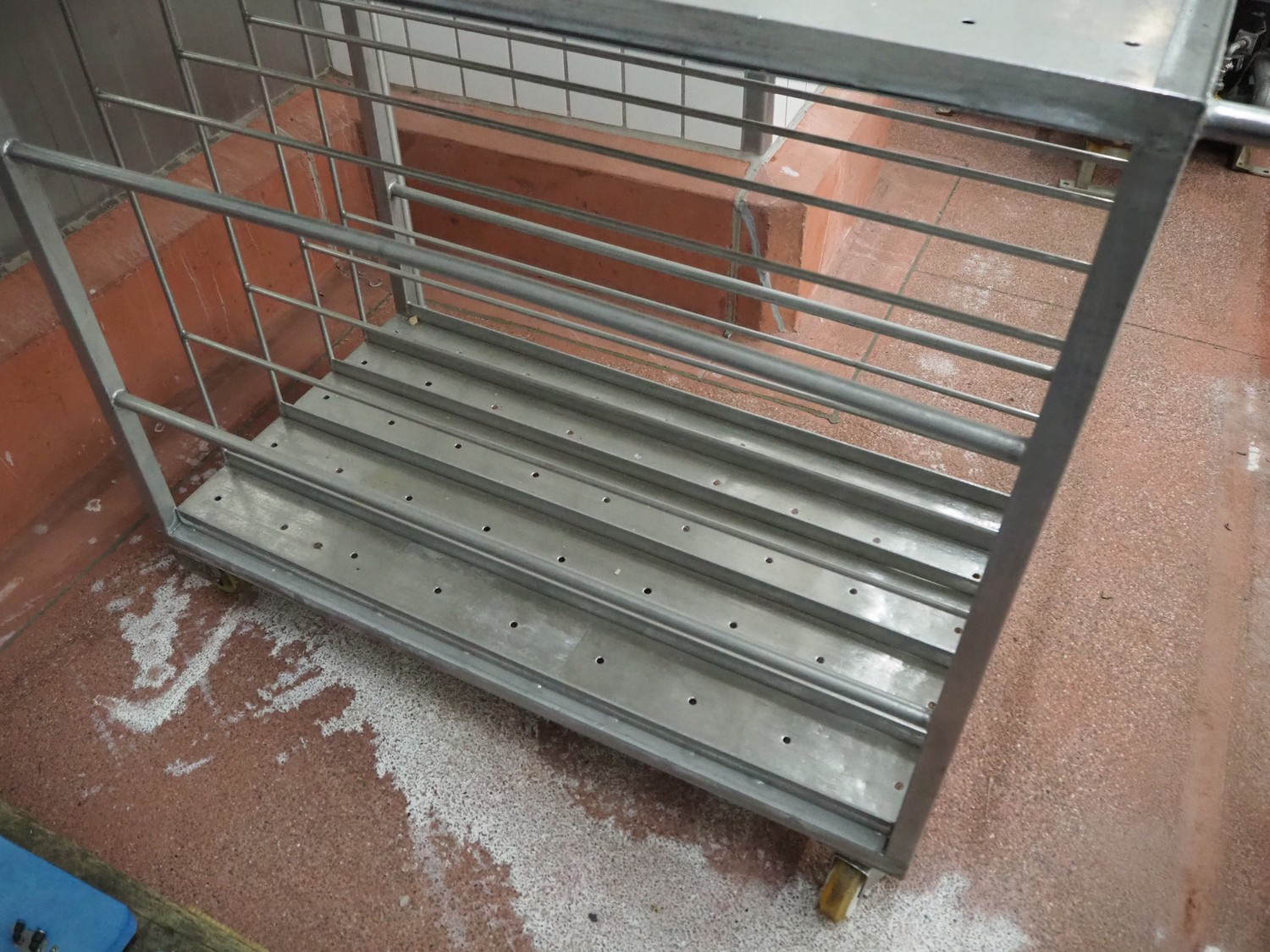 S/s trolley, working height: 1050 mm, total dimensions: 1200 mm x 670 mm x 1560 mm.