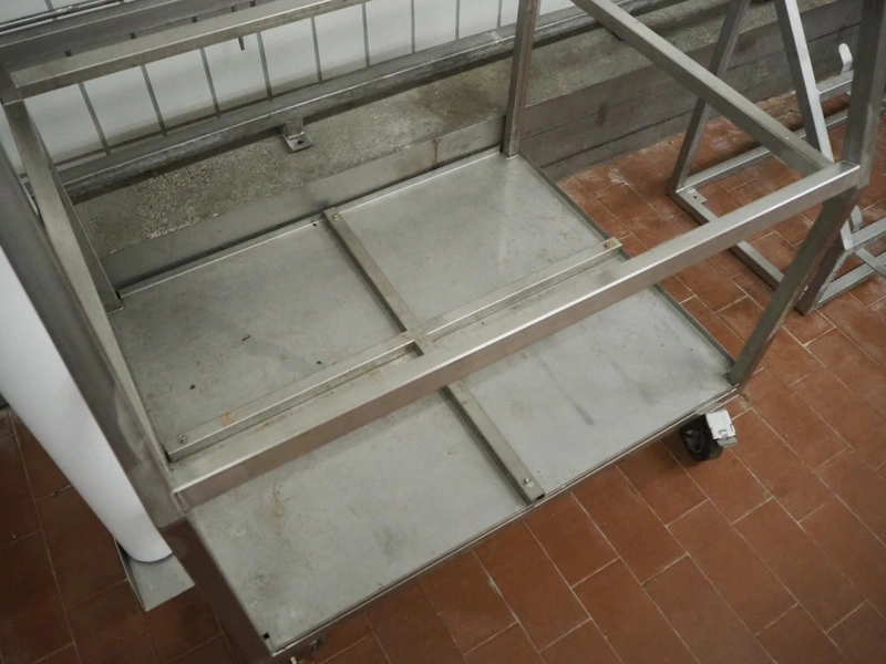 S/s trolley, dimensions: 1050 mm x 800 mm x 1500 mm.