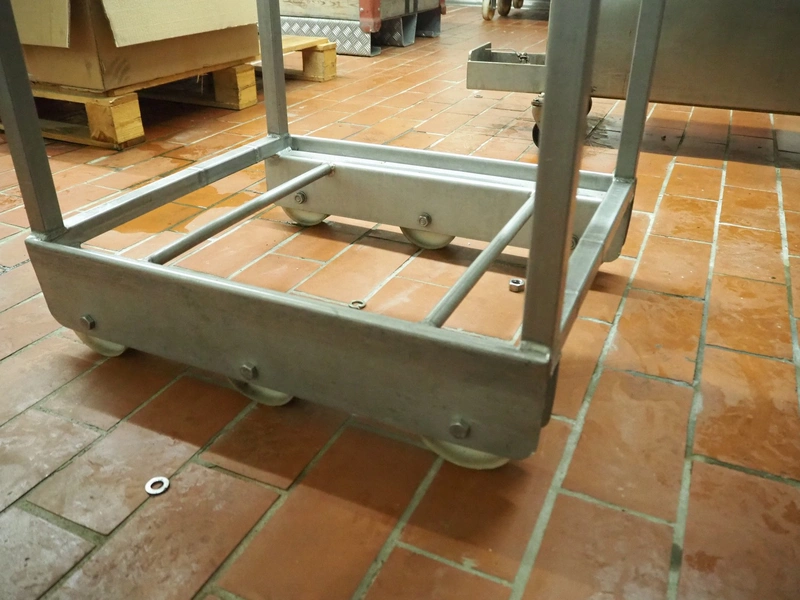 S/s trolley, inside dimensions: 700 mm x 490 mm x 350 mm, total dimensions: 1000 mm x 550 mm x 1050 mm.
