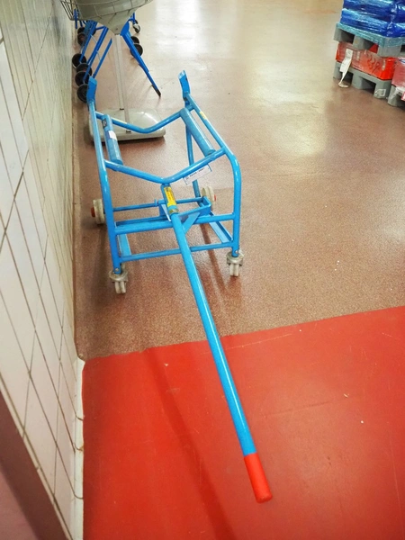 Kaiser + Kraft mobile tilting device for barrels, type: Ki 2002 m. W., capacity: 200 kg, own weight: 26 kg, total dimensions: 1970 mm x 600 mm x 650 mm.