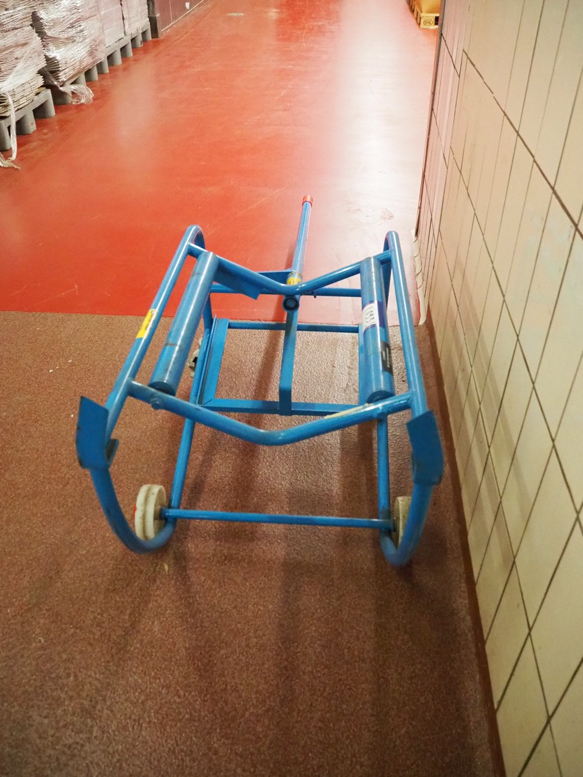 Kaiser + Kraft mobile tilting device for barrels, type: Ki 2002 m. W., capacity: 200 kg, own weight: 26 kg, total dimensions: 1970 mm x 600 mm x 650 mm.