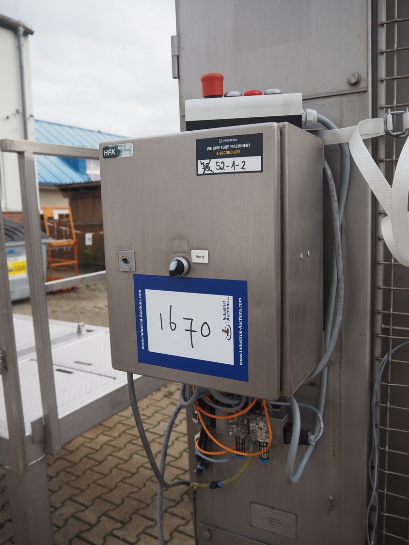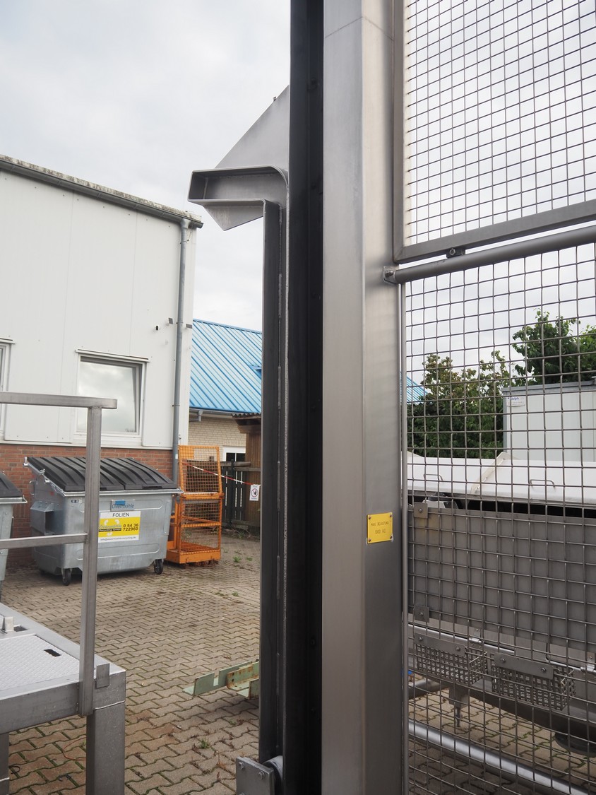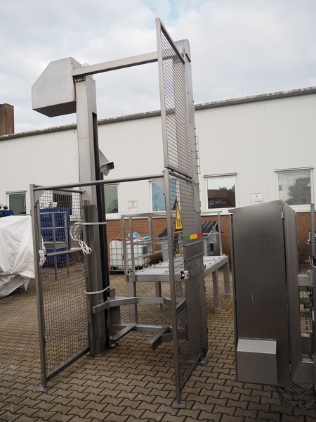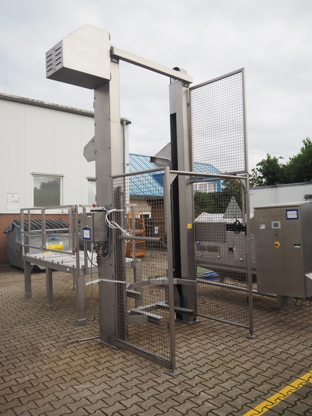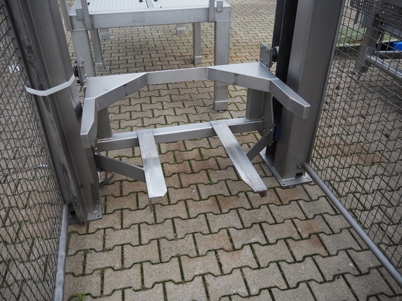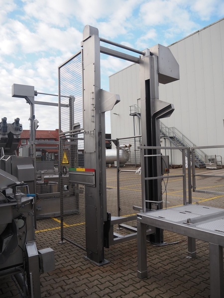 Boldt Systems lifter for mixing bowls with safety fence, model: BFDD 750S, serial number: BFO 10-157.01, year of construction: 2011, 400 V, 3 Ph, 50 Hz, 2.2 kW, capacity: 1000 kg, lifting height: 2340 mm, total dimensions: 2300 mm x 2000 mm x 4200 mm.