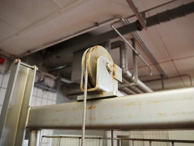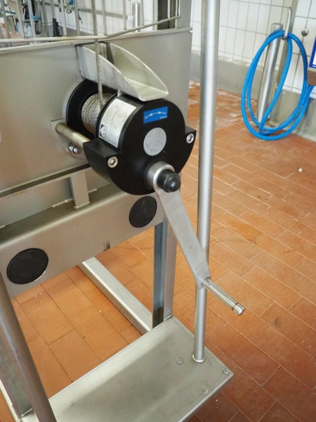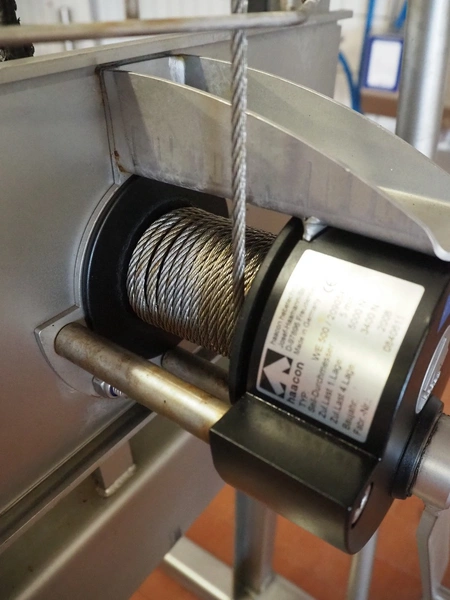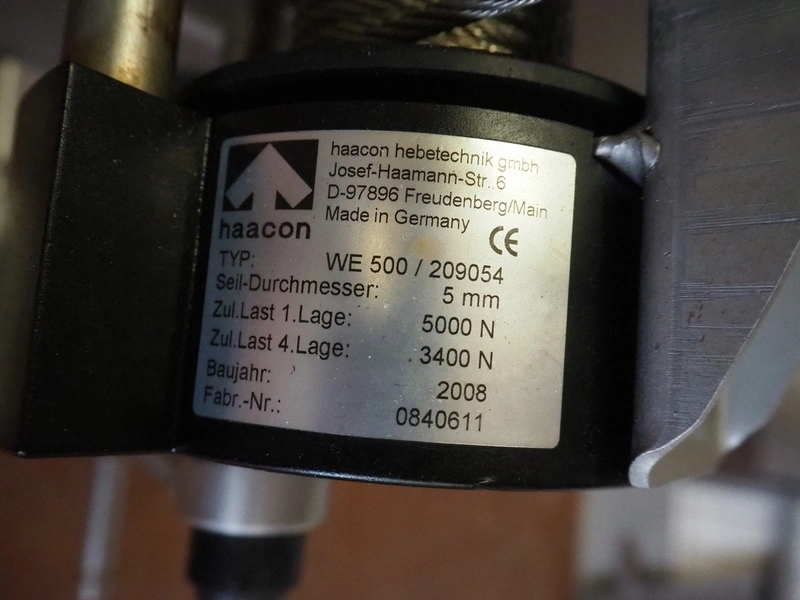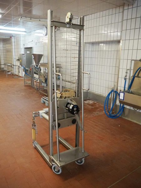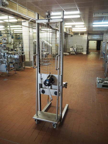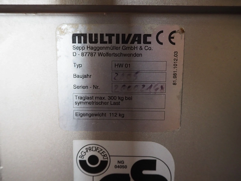 Multivac mobile lifter for film, type: HW 01, serial number: 20002198, year of construction: 2005, capacity: 300 kg, lifting height: 1700 mm, total dimensions: 1000 mm x 600 mm x 2200 mm.