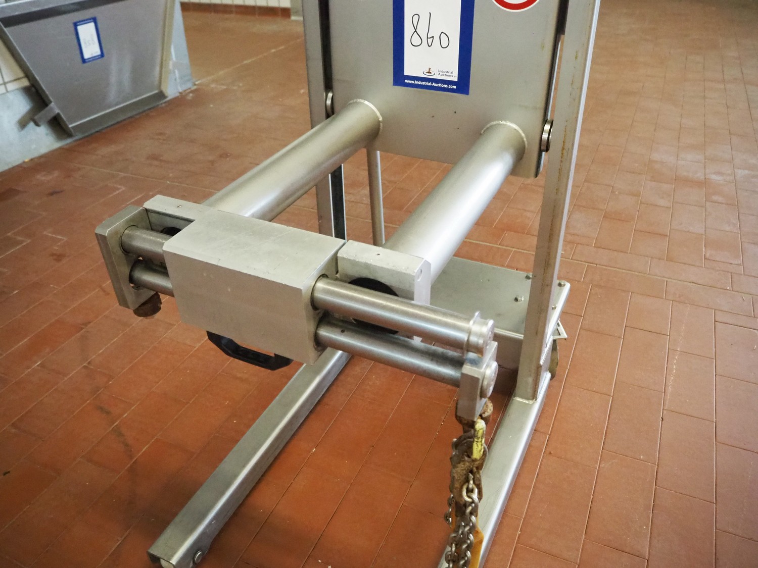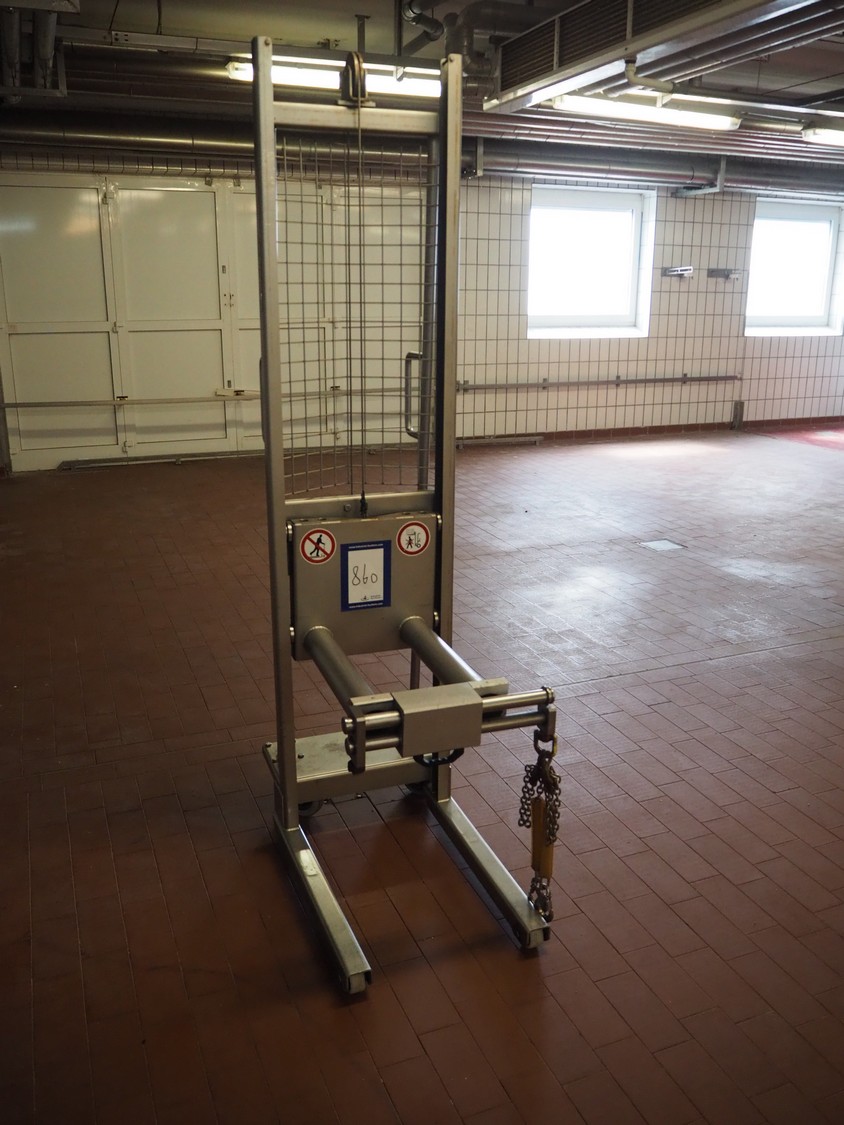 Multivac mobile lifter for film, type: HW 01, serial number: 20002198, year of construction: 2005, capacity: 300 kg, lifting height: 1700 mm, total dimensions: 1000 mm x 600 mm x 2200 mm.