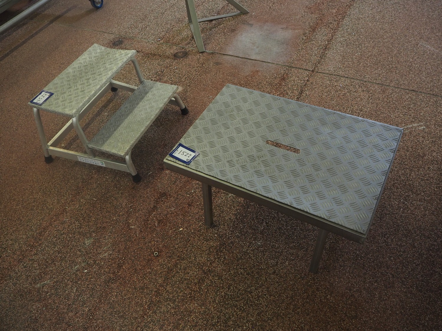 Günzburger Steigtechnik aluminum step and steel frame, dimensions: (1x) 550 mm x 500 mm x 400 mm, (1x) 780 mm x 520 mm x 400 mm.