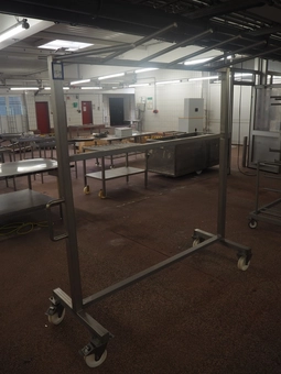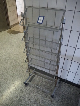 Mobile s/s rack with pegs, dimensions: 1950 mm x 1300 mm x 1100 mm.0 bidsLot is closed -