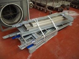 Aluminium racks, dimensions: 3040 mm x 540 mm x 2060 mm and 1010 mm x 380 mm x 1850 mm. Already dismantled.1 bidLot is closed