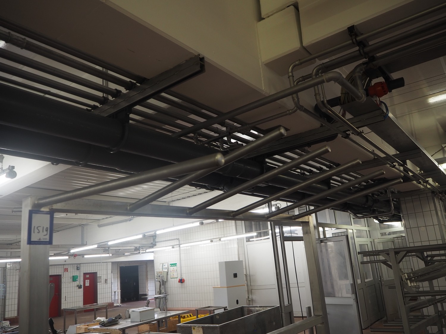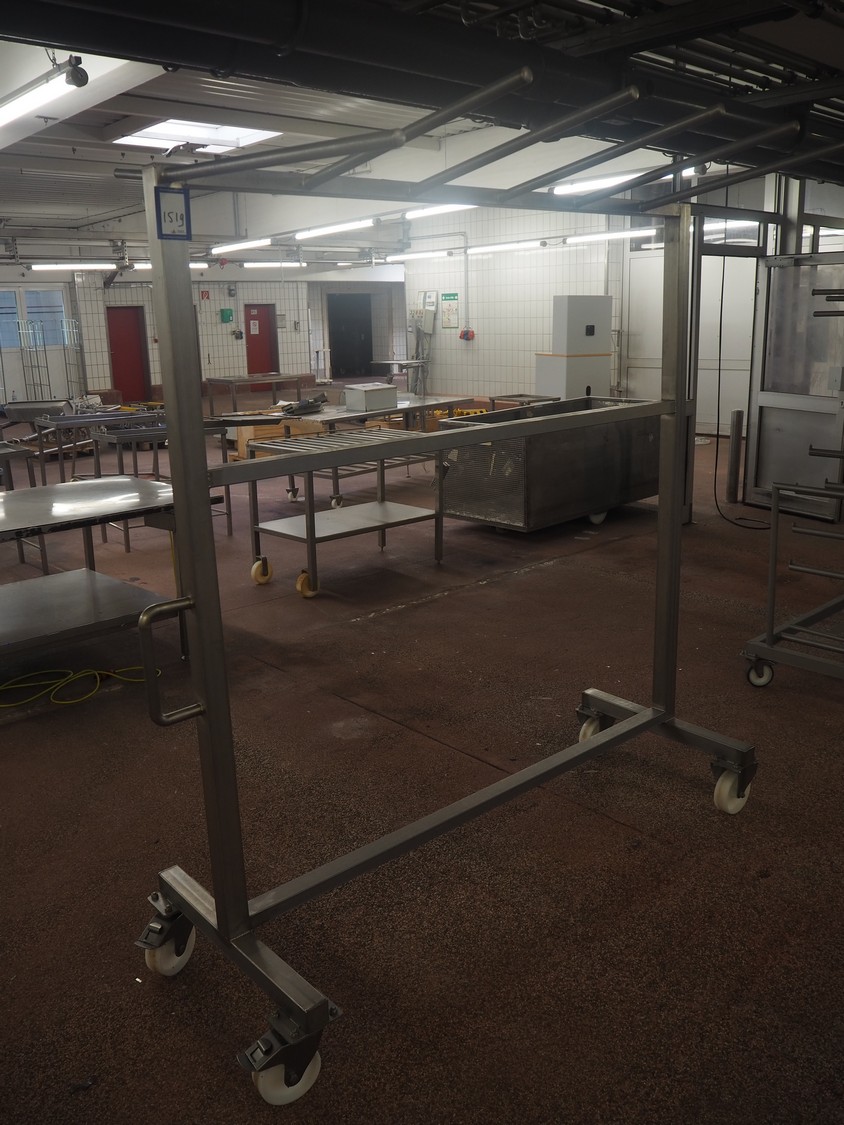 Mobile s/s rack with pegs, dimensions: 1950 mm x 1300 mm x 1100 mm.