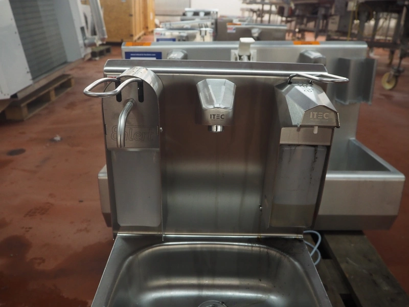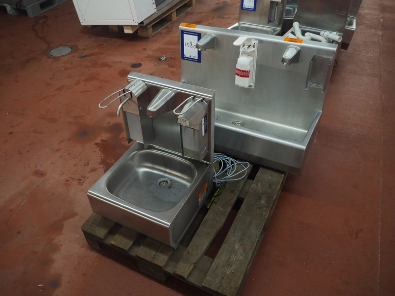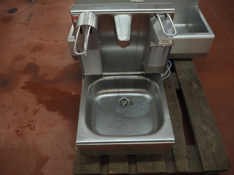 2 Itec s/s sinks with faucets, type: 50-W, 20550-2W, year of construction: 03/07, 09/2018, 230 V, 50 Hz, 0.1 kW, dimensions: (1x) 950 mm x 550 mm x 600 mm, (1x) 450 mm x 430 mm x 580 mm.