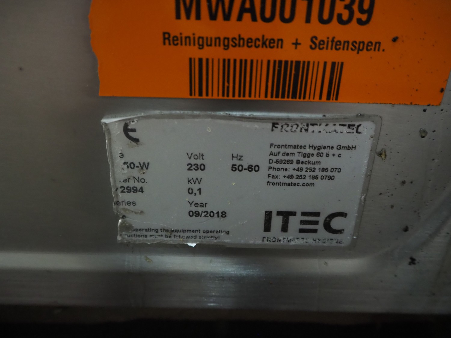 2 Itec s/s sinks with faucets, type: 50-W, 20550-2W, year of construction: 03/07, 09/2018, 230 V, 50 Hz, 0.1 kW, dimensions: (1x) 950 mm x 550 mm x 600 mm, (1x) 450 mm x 430 mm x 580 mm.