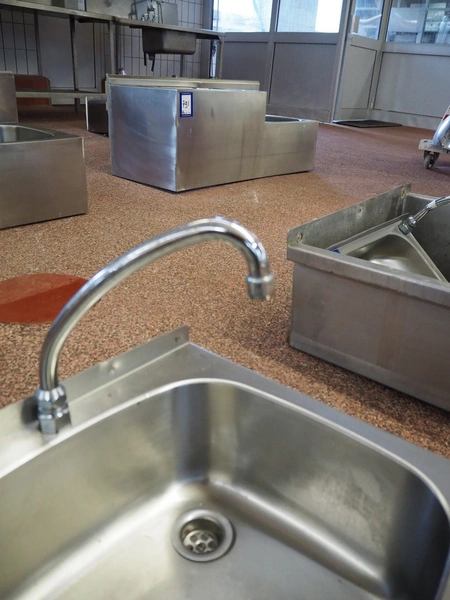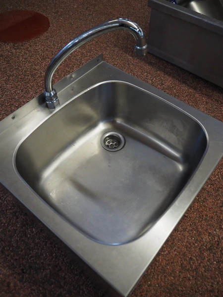 Itec s/s sink with faucet, type: 2026-W, year of construction: 01/03, dimensions: 420 mm x 420 mm x 450 mm.