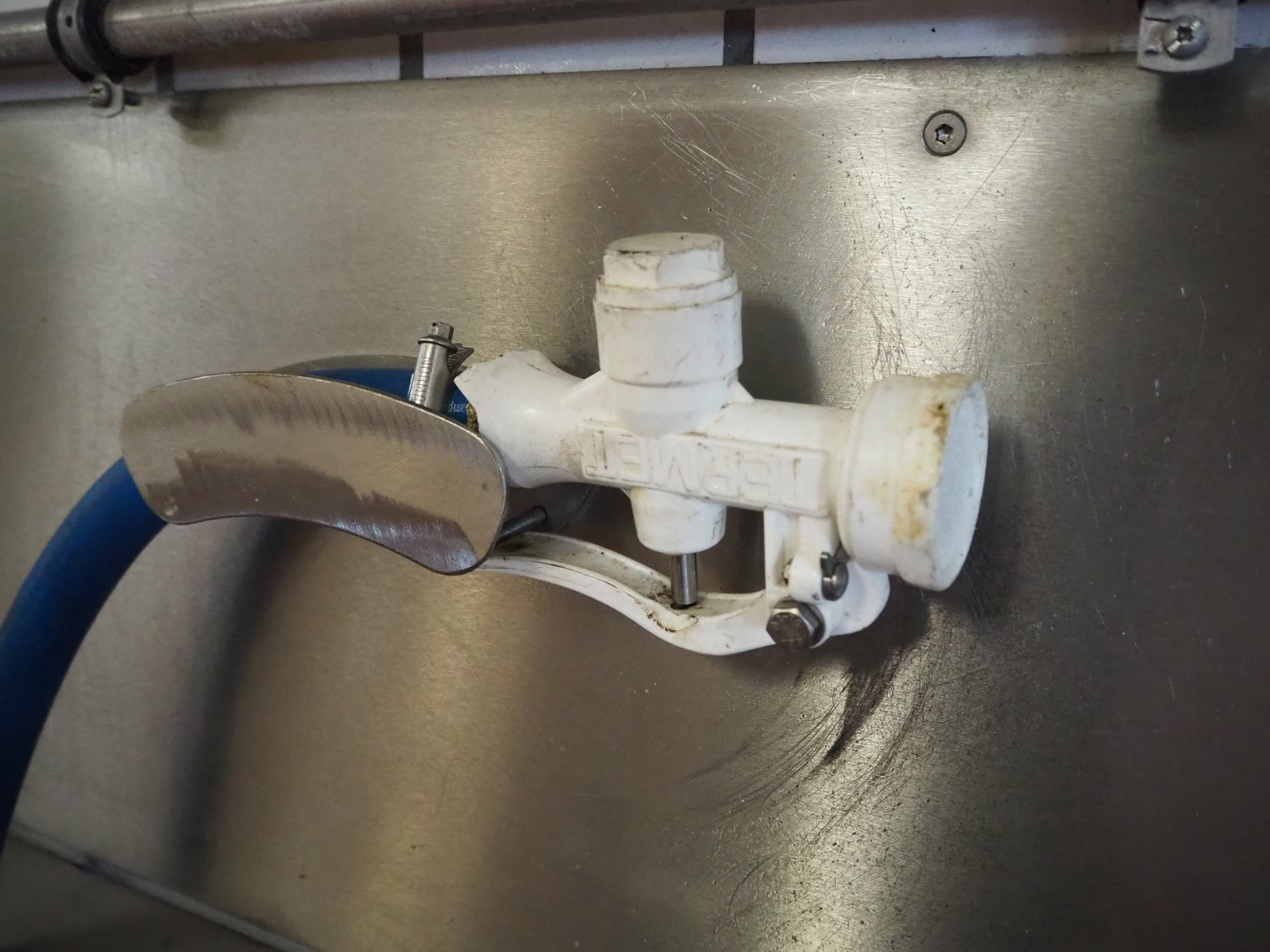 S/s sink with hose and pistol, dimensions: 1000 mm x 460 mm x 700 mm.