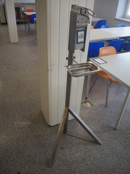 2 s/s hand disinfection dispensers, dimensions: (2x) 500 mm x 500 mm x 1350 mm.0 bidsLot is closed -