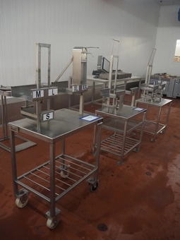 3 s/s mobile frames for hygiene equipment, dimensions: (3x) 700 mm x 500 mm x 1750 mm. 2 frames missing wheels.0 bidsLot is closed -