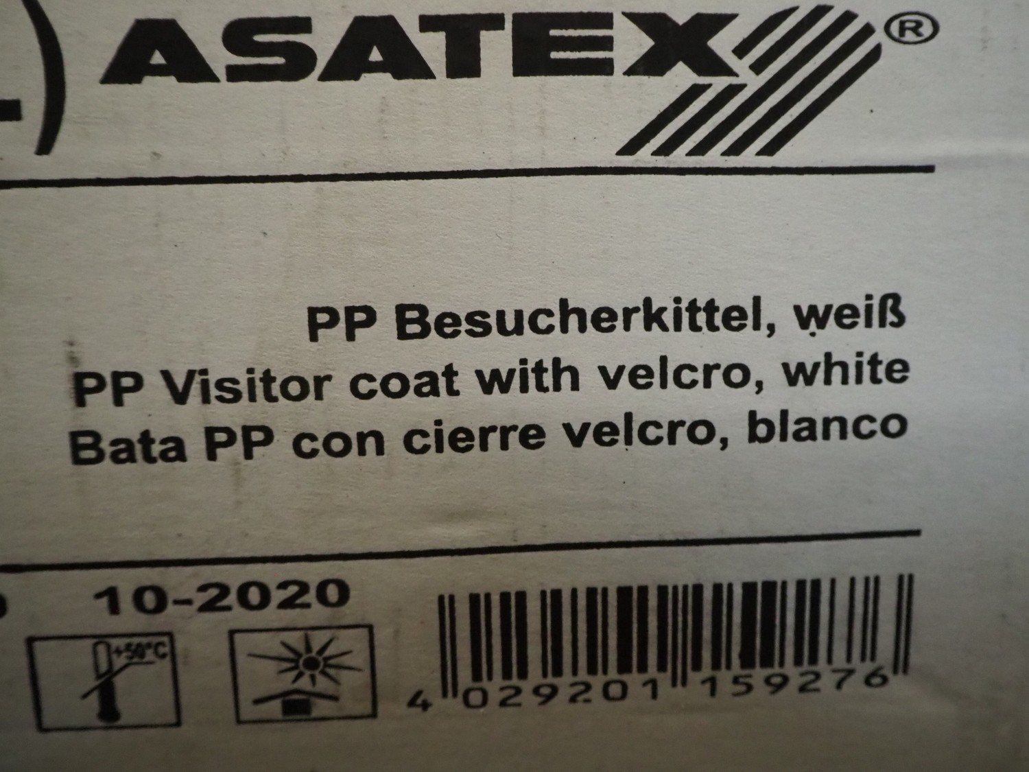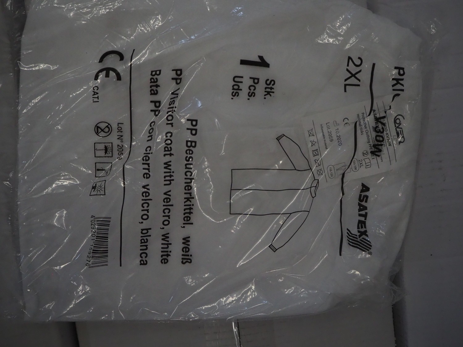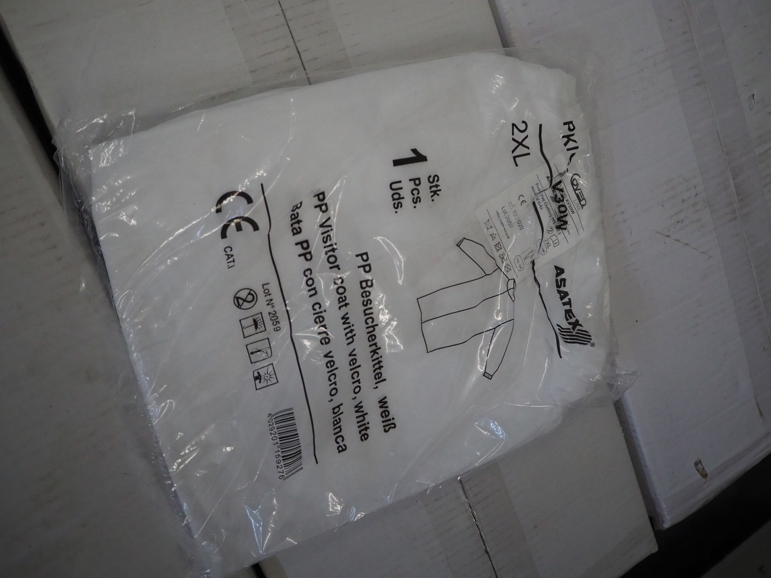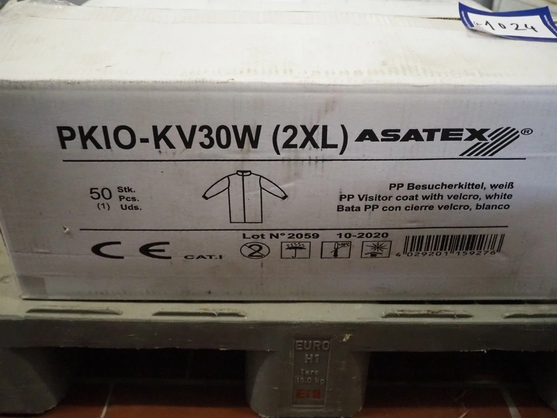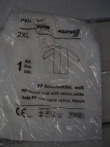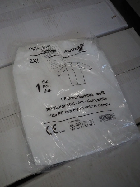 4 boxes with Asatex visitor coats with Velcro, dimensions: (4x) 600 mm x 270 mm x 250 mm.