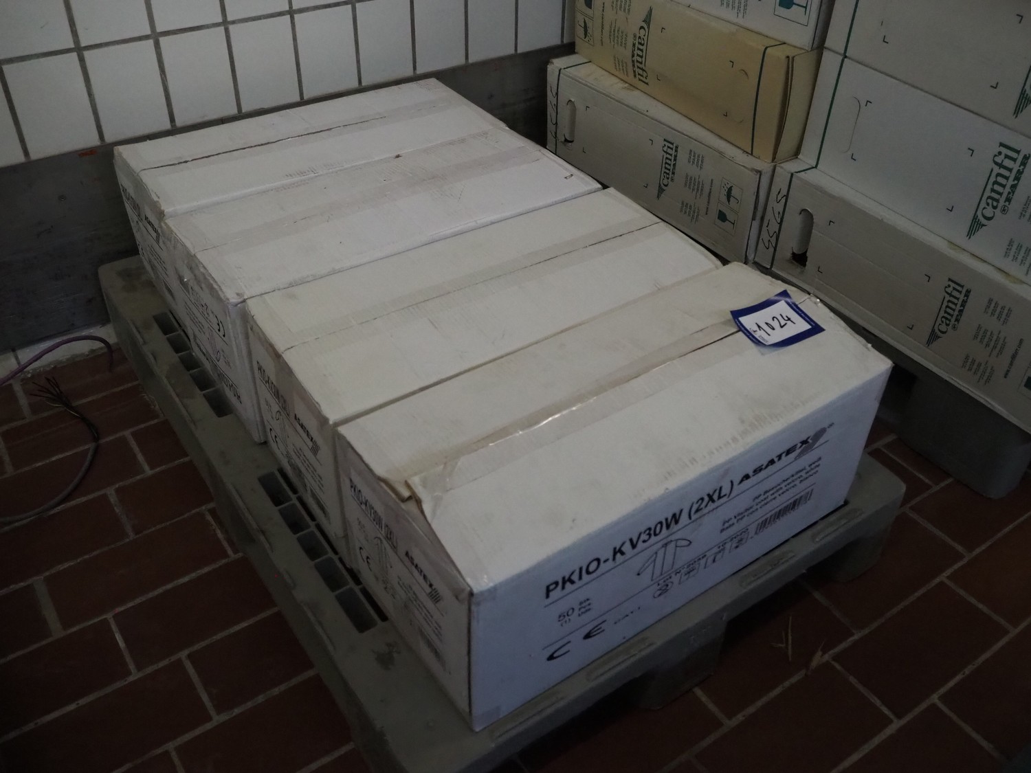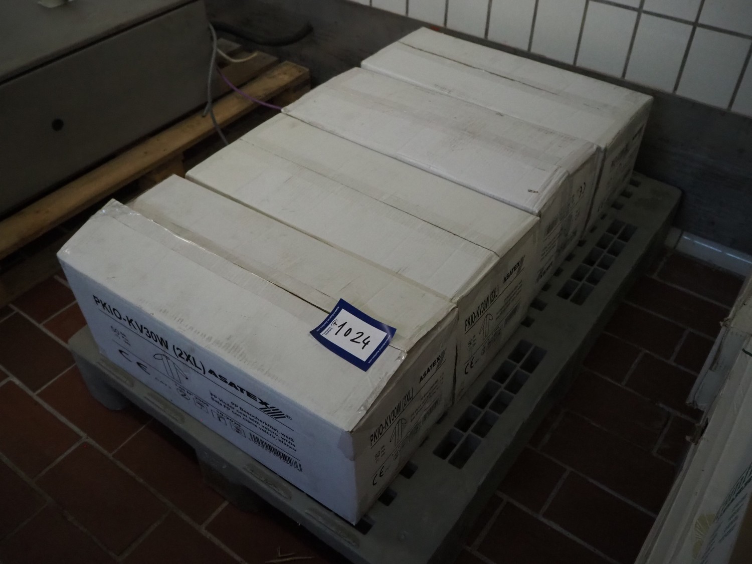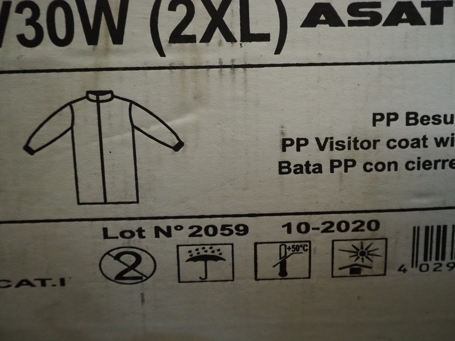 4 boxes with Asatex visitor coats with Velcro, dimensions: (4x) 600 mm x 270 mm x 250 mm.