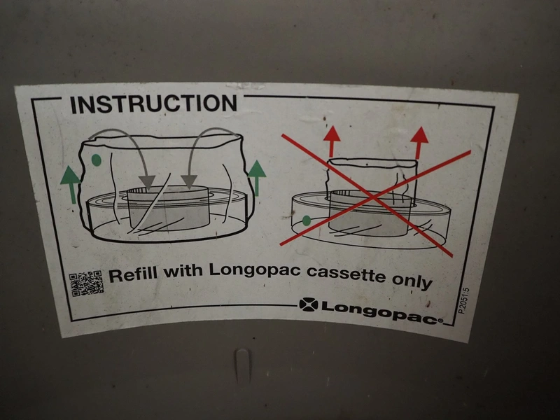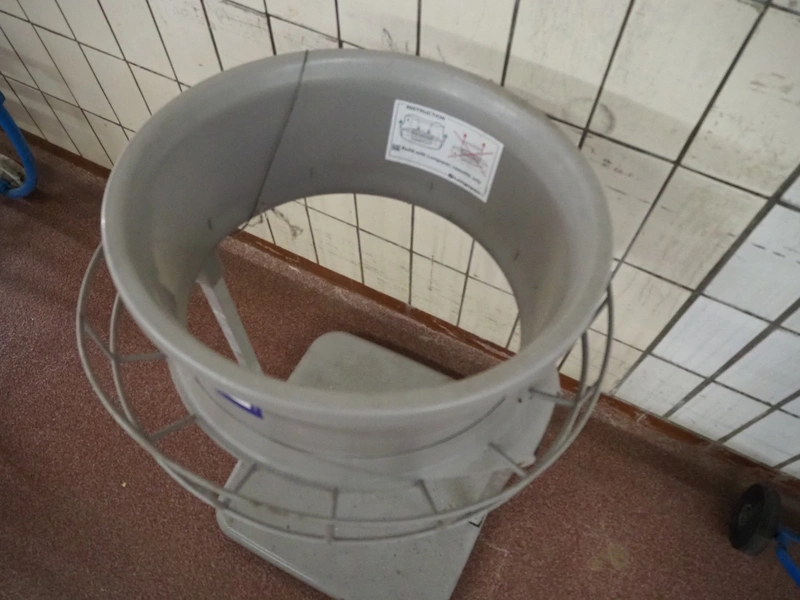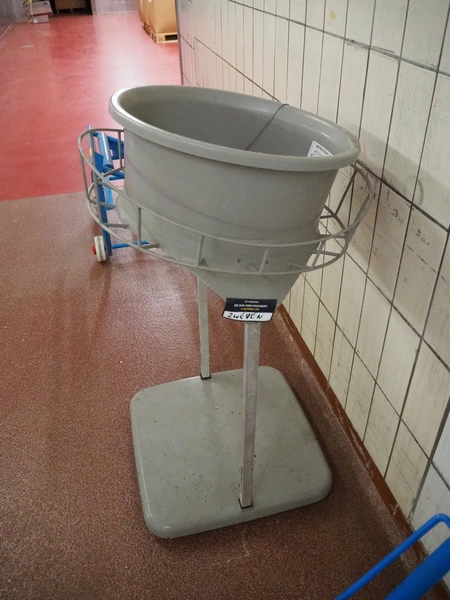 Longopac waste bag holder, clearance: Ø 460 mm, total dimensions: 600 mm x 530 mm x 1020 mm.