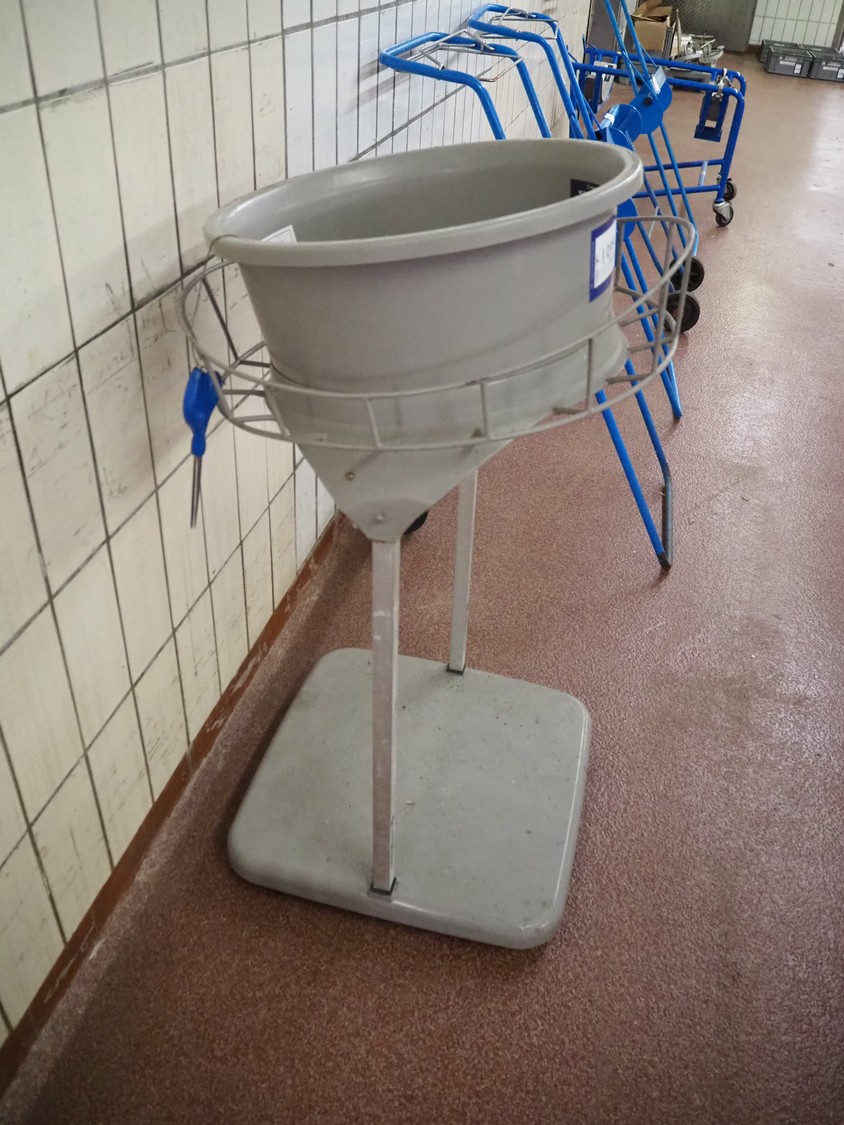 Longopac waste bag holder, clearance: Ø 460 mm, total dimensions: 600 mm x 530 mm x 1020 mm.