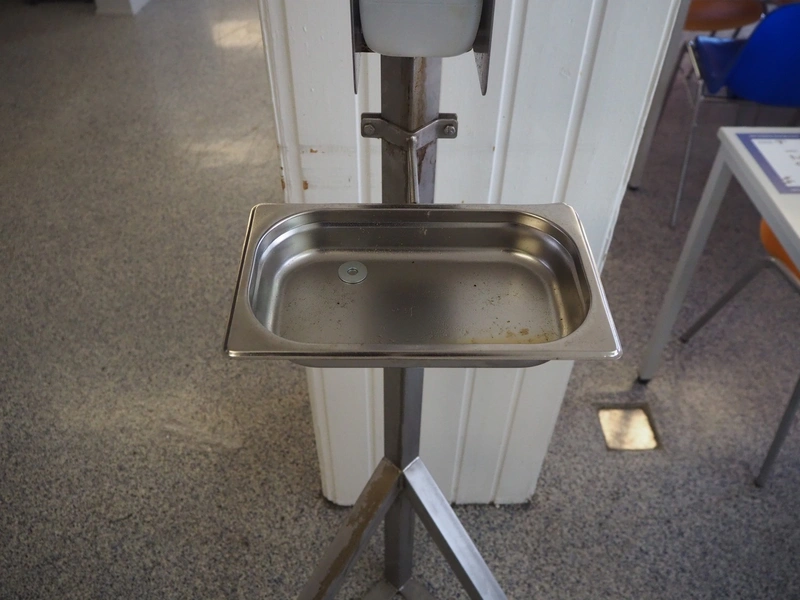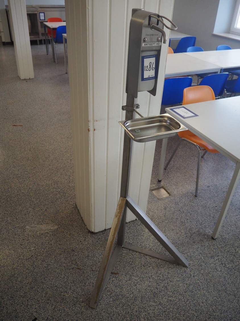 S/s soap dispenser, dimensions: 500 mm x 500 mm x 1500 mm.